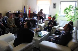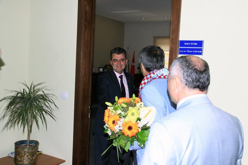 Rektor IUS-a, prof. dr. Özer Cınar, uvaženom gostu, uručio je specijalni poklon izrađen od bakra, simbol Sarajeva, kao lijepu uspomenu na ovaj grad i posjetu Internacionalnom univerzitetu.