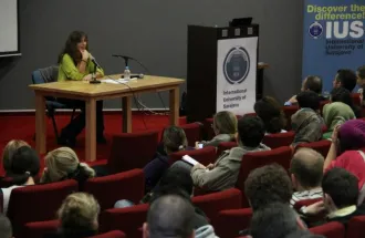 After her lecture, Mrs. Furlan answered questions from IUS students about her career and new life in USA, her opinion on film Industry in USA and Balkans today, her most important roles and importance of the family in her life.