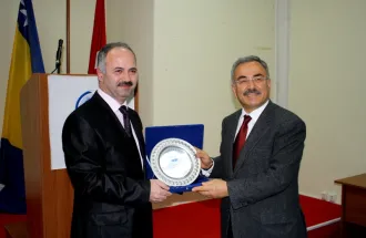 U znak zahvalnosti, g. Alija Rizvanbegović i rektor IUS-a su gostima uručili plakete Internacionalnog univerziteta u Sarajevu i Fondacije za razvoj obrazovanja Sarajevo.