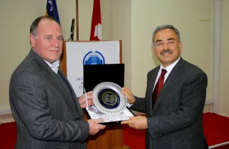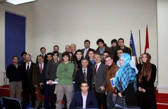 Nakon sastanka u Rektoratu, gosti i njihovi domacini uputili su se u Salu za konferencije gdje se dr. Güler obratio zainteresovanim studentima i profesorima. U svom obracanju dr. Güler se dotakao mnogih aktuelnih tema iz podrucja ekonomije i energije, te porucio studentima da maksimalno iskoriste prilike koje im se pružaju na IUS-u i u Bosni i Hercegovini. Dr. Güler je svim studentima poželio srecu u njihovom školovanju, uz napomenu da oni trebaju raditi na poboljšanju tursko-bosanskih odnosa. Na kraju obracanja, dr. Güler je pružio priliku studentima da mu postavljaju pitanja.