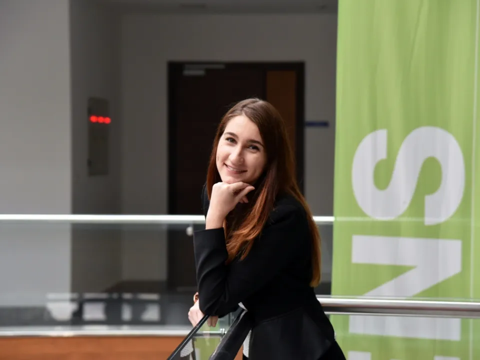 Dinka Hodžić, rođena je u Zenici, ali je odrasla u Minneapolisu, Minnesota. Odlučila je nastaviti akademsku karijeru na IUS-u na studijskom programu Međunarodni odnosi, gdje očekuje da će dosegnuti svoj puni potencijal dok se povezuje sa svojom kulturom i dok doživljava ljepote Bosne i Hercegovine. "Ovdje, na IUS-u, težim dosegnuti vlastitu veličinu i očekujem da će zadaci koje studij postaviti pred mene biti tako teški da će za mene biti izazov, i znam da ću ovdje ostvariti svoje potpune potencijale", kaže Dinka, te dodaje da IUS, kroz bogati kurikulum i strukturu obrazovanja zadovoljava najviše standande. Planira nastaviti doktorski studij na polju sociokulturne antropologije