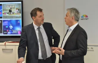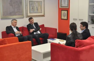 Delegacija Internacionalnog univerziteta u Sarajevu se u srijedu, 9. aprila 2014. godine u prostorijama Hayat televizije, sastala sa direktorom ove medijske kuće, gospodinom Elvirom Švrakićem.