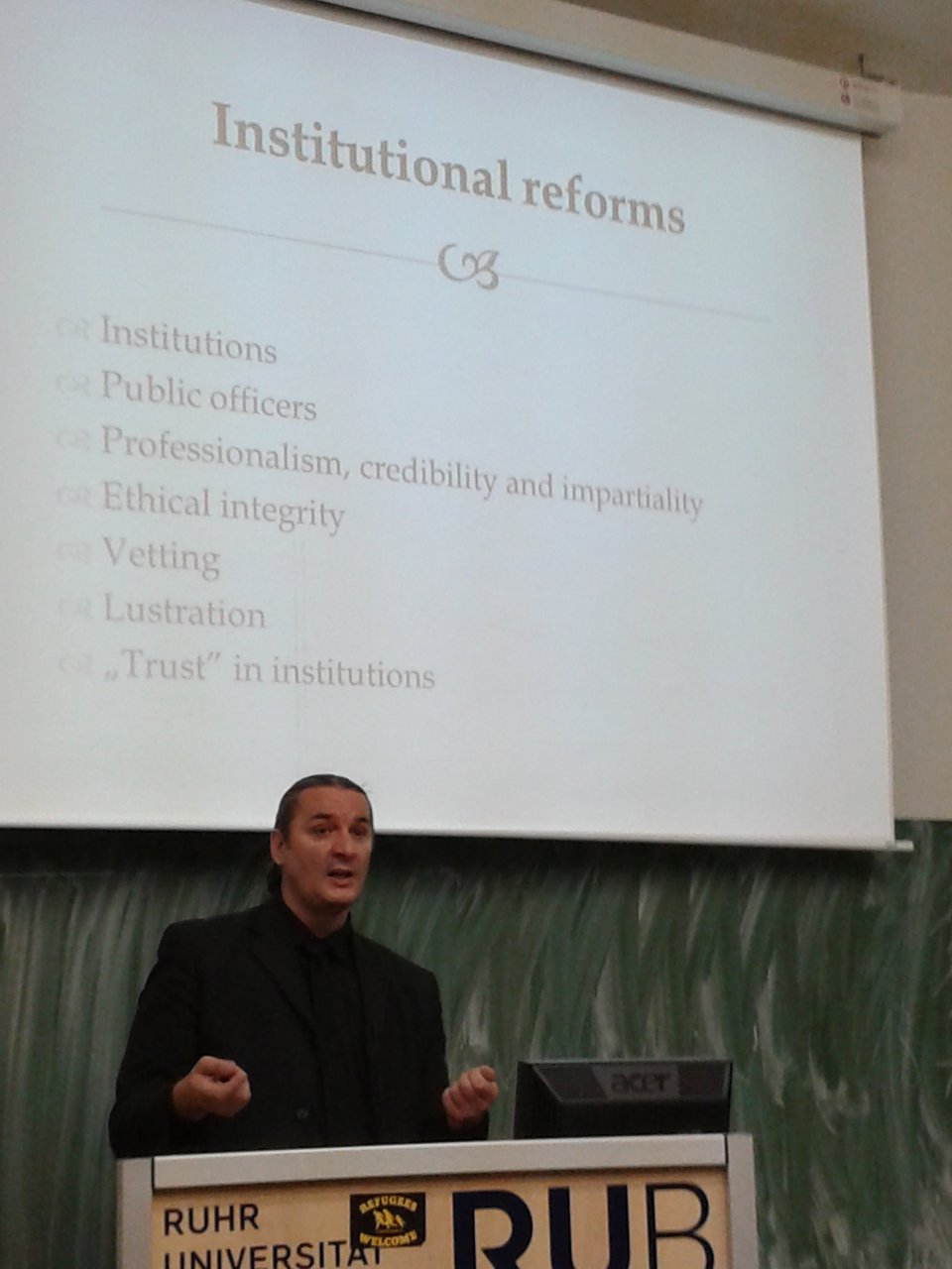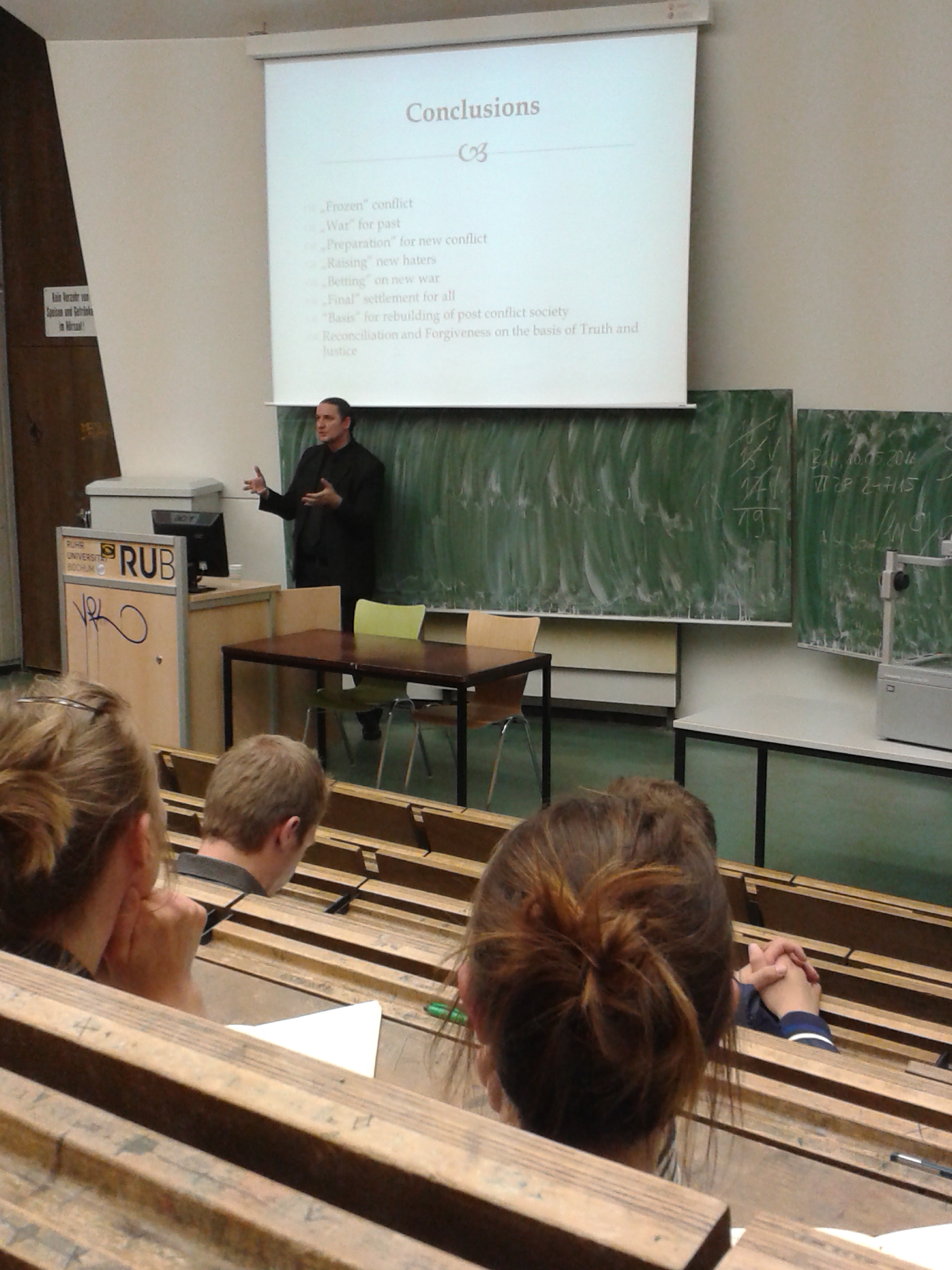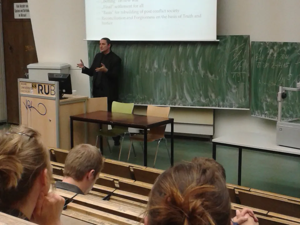 Član akademskog osoblja Pravnog fakulteta Internacionalnog univerziteta u Sarajevu, doc. dr Goran Šimić je održao gostujuće predavanje na temu „Tranzicijska pravda u Bosni i Hercegovini: Bavljenje zloupotrebama ljudskih prava i društvenom rekonstrukcijom u u svjetlu masovnog nasilja“ na Pravnom fakultetu univerziteta Ruhr u Bochumu, Njemačka 23. maja 2016. godine.