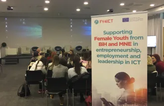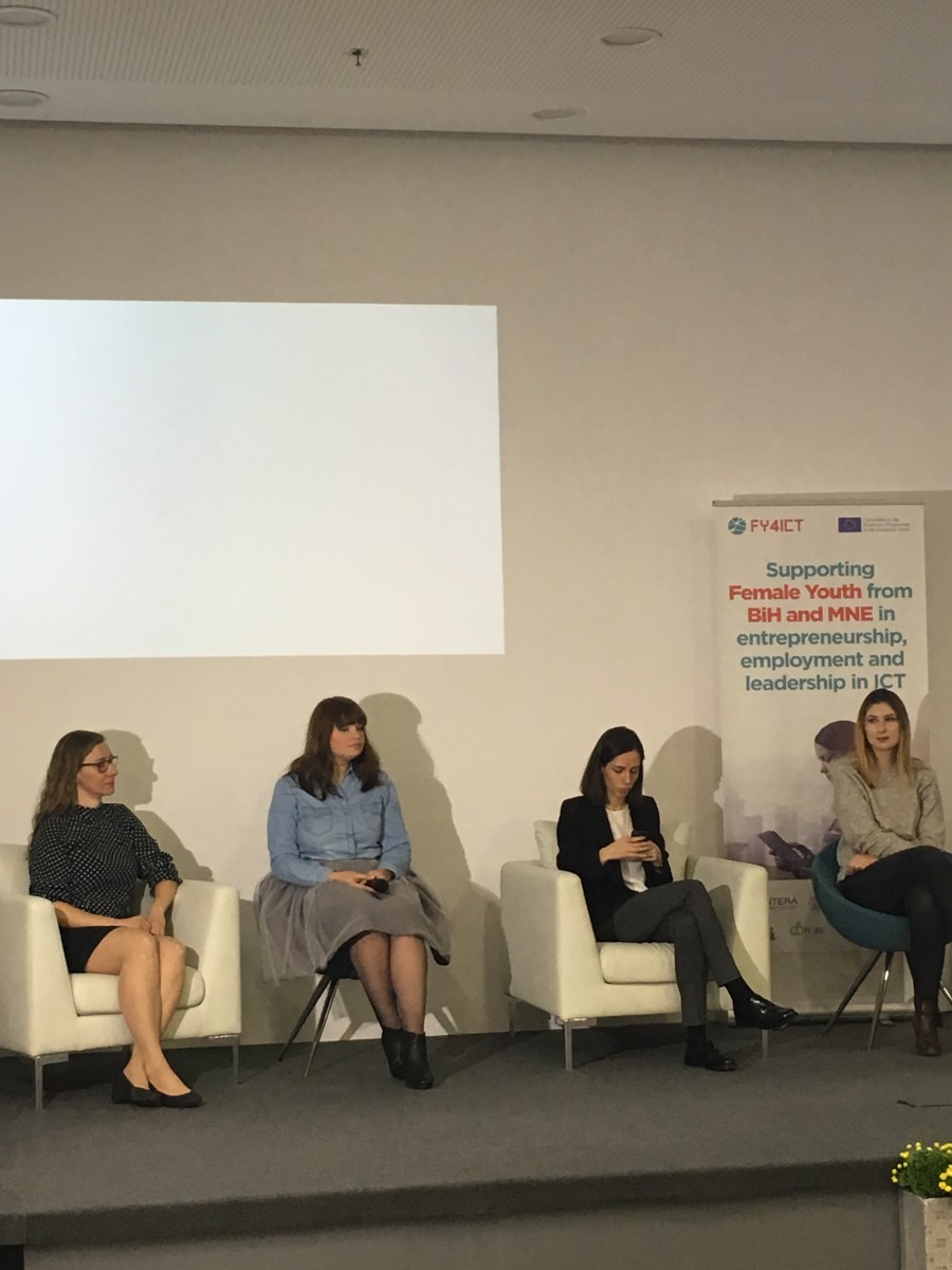 U ponedjeljak, 26. marta 2018. godine započele su aktivnosti u sklopu projekta „Supporting Female Youth from BiH and MNE in entrepreneurship, employment and leadership in ICT“, skraćeno „FY4ICT“, gdje su Dr Jasminka Hasić Telalović i studentica Džana Bašić bile panelistice i učesnice radionice.
