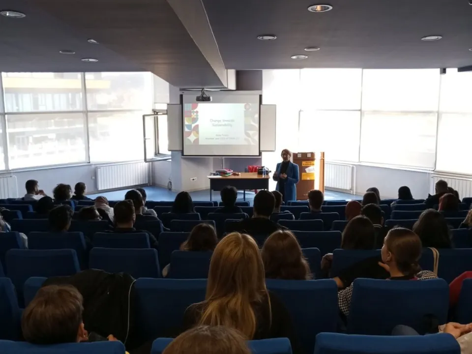 Osim toga, predavanje je predstavilo i kompaniju Tana 21, poznatoj po svojoj predanosti održivosti te inovativnim praksama i projektima. Gost predavač je kroz pregled inicijativa kompanije pokazao kako preduzeća mogu učinkovito integrisati održivost u svoje operacije, stvarajući pozitivan utjecaj i na okoliš i na svoje poslovanje.