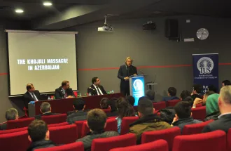 U ime IUS-a, gostima se obratio i prof. dr. Metin Boşnak sa Fakulteta umjetnosti i društvenih nauka (FASS), koji je tokom predavanja naglasio važnost obilježavanja genocida i podsjećanja novih generacija na historiju. Predstavnik Udruženja bosansko-azerbejdžanskog prijateljstva, Samir Šibonić, naglasio je da se narod Bosne i Hercegovine suosjeća sa narodom Azerbejdžana najviše zbog ratnih dešavanja kroz koje je prošla BiH.
