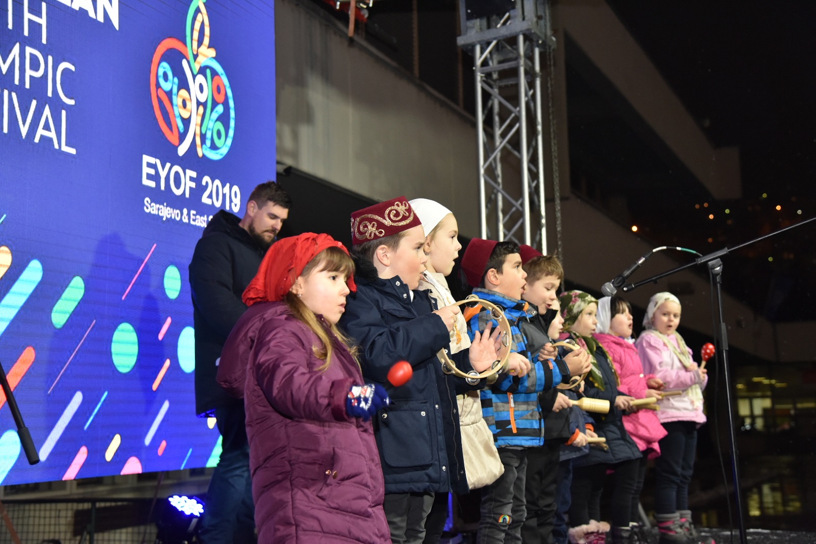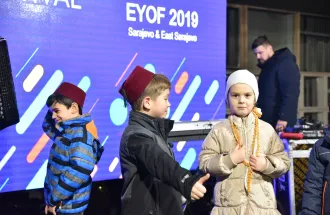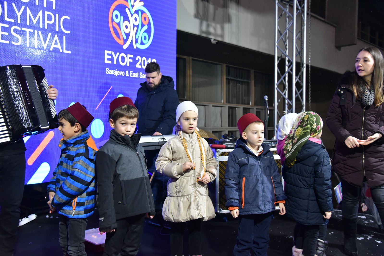 Prisutnima su djeca poželjela dobrodošlicu na 20 jezika, zemalja učesnica EYOF-a, što je izazvalo posebne emocije i oduševljenje publike.