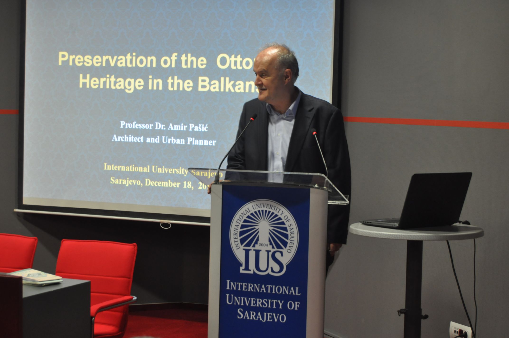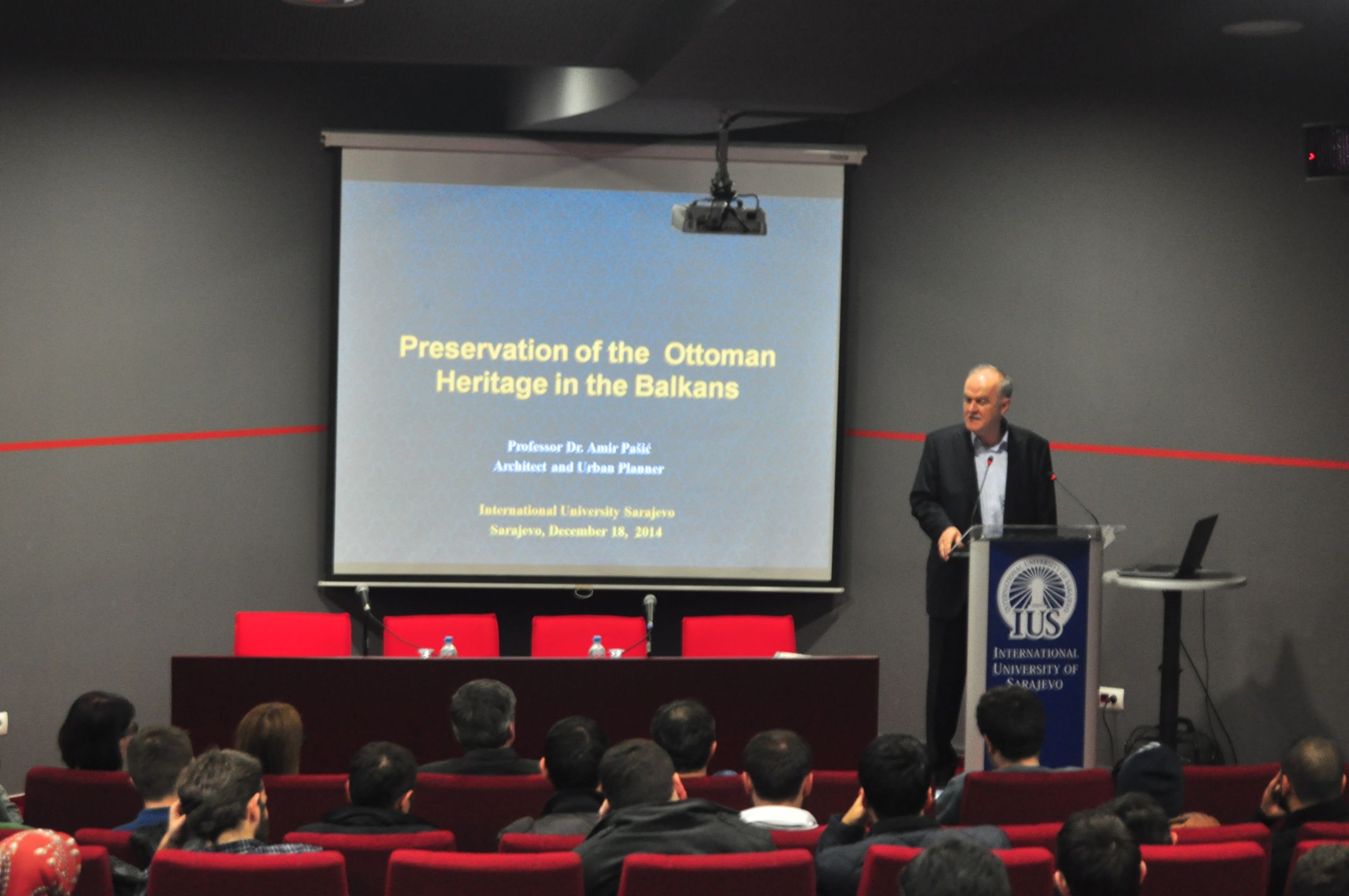 U okviru Centra za balkanske studije pri Internacionalnom univerzitetu u Sarajevu (IUS), prof. dr. Amir Pašić održao je predavanje o temi ‘’Očuvanje osmanske arhitekture na Balkanu’’, u četvrtak, 18. decembra 2014. godine u velikom amfiteatru. Prisutne goste, profesore i studente pozdravio je koordinator Centra, vanredni prof. dr. Ali Çaksu, naglasivši da je ovo predavanje prvo u nizu predavanja.