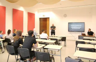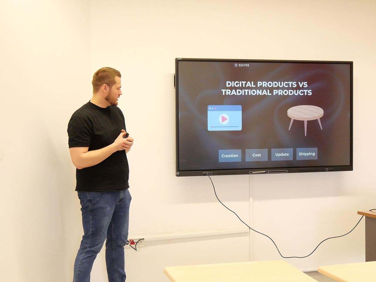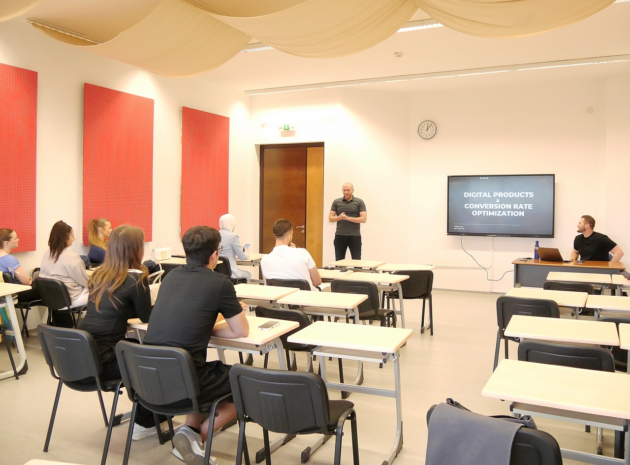 Oslanjajući se na svoje bogato profesionalno iskustvo, g. Aganović je studentima pružio praktičan uvid u to kako se digitalni proizvodi osmišljavaju, plasiraju i optimizuju za maksimalni učinak. Istakao je dokazane strategije za povećanje stope konverzije i postizanje poslovnih rezultata, te predstavio alate i tehnike koje efikasno povezuju teoriju digitalnog marketinga s uspješnom praksom.