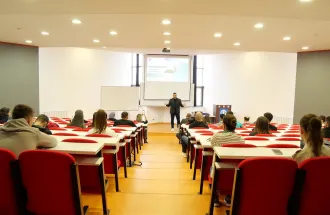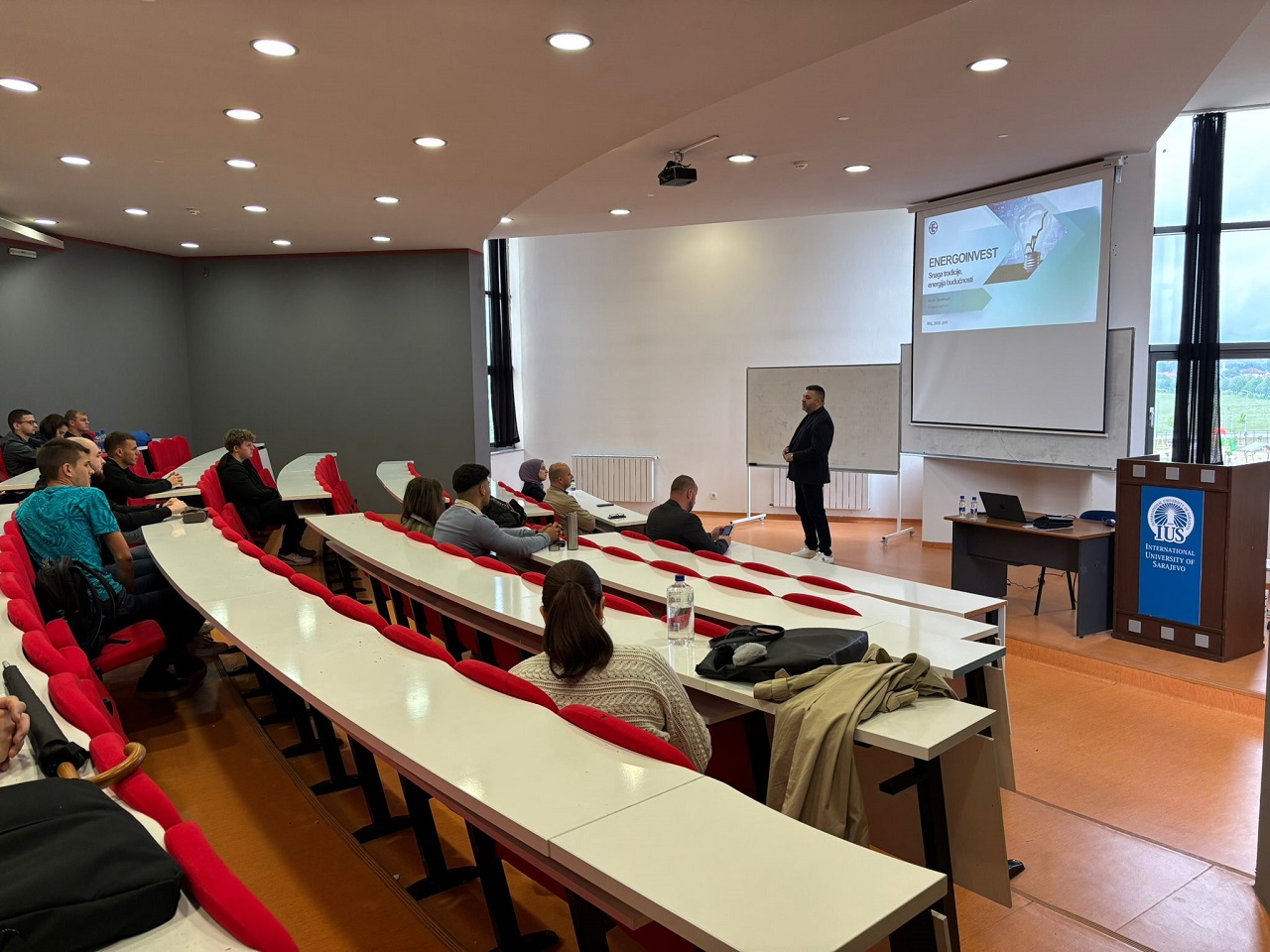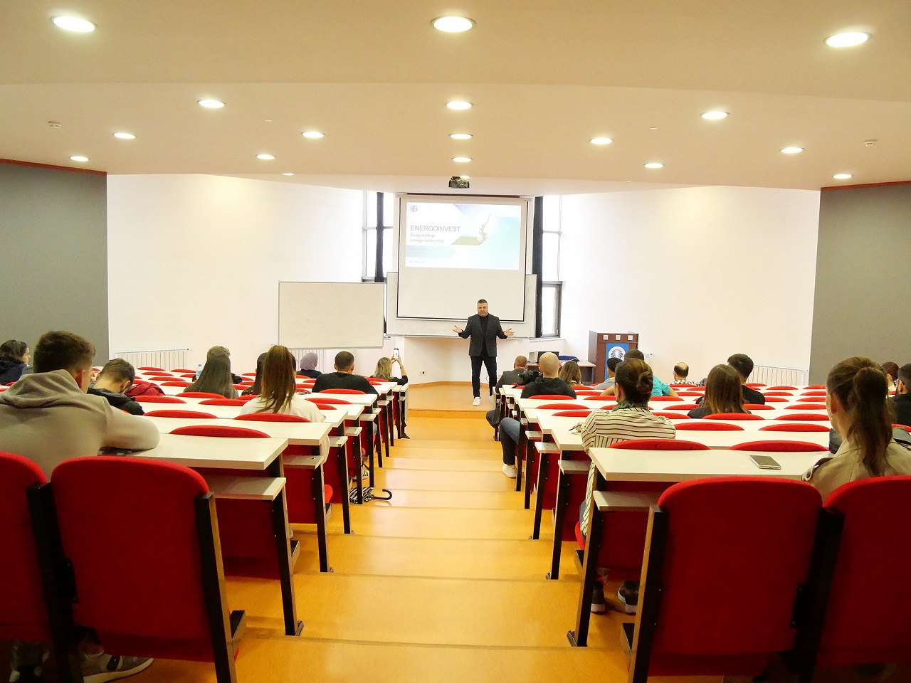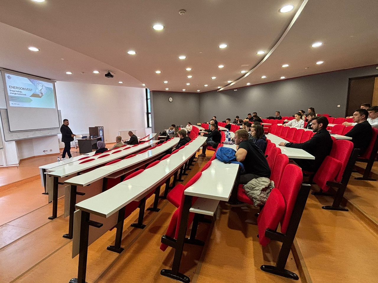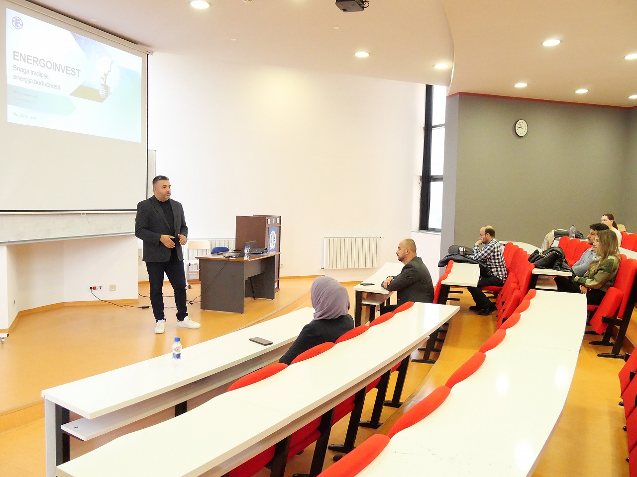 Gospodin Ustamujić održao je inspirativno i sadržajno predavanje, tokom kojeg je podijelio svoje profesionalno iskustvo i osvrnuo se na razvoj Energoinvesta kroz vrijeme. Istakao je da su posvećenost, stručnost i hrabrost da se prihvate izazovi ključni faktori uspjeha. Njegova centralna poruka bila je jasna: uz naporan rad i spremnost na rizik, čak i najambiciozniji snovi – poput ostvarivanja vlastite verzije „američkog sna” – mogu postati stvarnost.