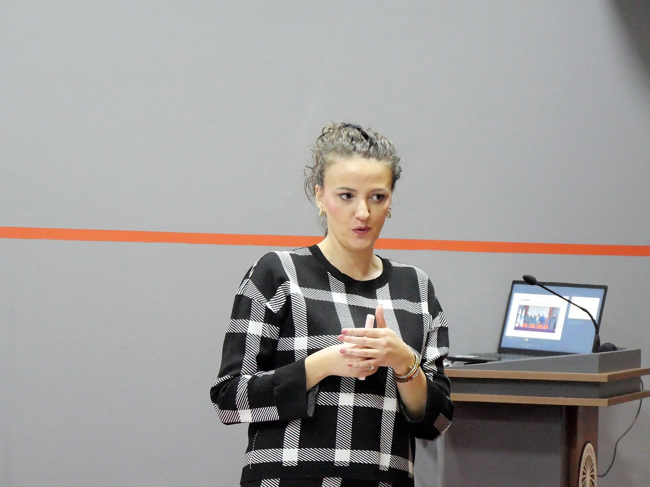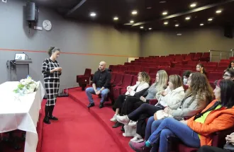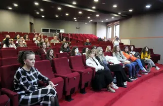Dr. Šutković je predstavio misiju i tekuće aktivnosti IAE centra, naglasivši njegovu ulogu u podsticanju inovacija, istraživanja i razvojne preduzetničke kulture na IUS-u. Dr. Bičo je predstavila Fakultet menadžmenta i javne uprave, ističući njegove akademske programe i projekte povezane s ciljevima održivog razvoja (SDGs).
