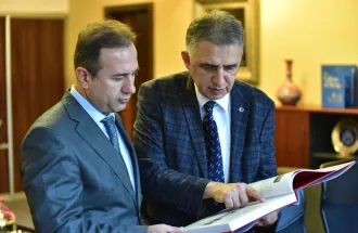 Predstavnik TRT-a gospodin Bünyamin Şahin posjetio je Internacionalni univerzitet u Sarajevu (IUS) u četvrtak, 8. decembra 2016. godine. Prorektor IUS-a vanredni prof. dr. Ali Gürsel, vanredni prof. dr. Lejla Panjeta, viši asistent Muhammed Yasir Göz, menadžerica biblioteke Merima Arslankadić i PR menadžerica Meldina Ugarak pozdravili su uvaženog gosta u rektoratu. Cilj posjete predstavnika TRT-a je donacija knjiga za odjel Vizuelne umjetnosti I komunikacijski dizajn IUS-a. Donirane knjige se sastoje od knjiga dokumentacije, historije i vizualne umjetnosti. Jedna od knjiga koju je TRT donirao IUS-u je "Geçmişten geleceğe belgeler ...bilgiler...", koja je objavljena 1968. godine. Obogatili su odjel Vizuelne umjetnosti I komunikacijskog dizajna s knjigama koje su stare više od 40 godina.