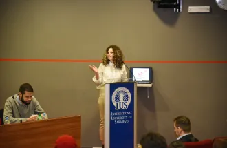Predavači o ovoj aktuelnoj temi su članovi akademskog osoblja sa studijskog programa Međunarodni odnosi, docent dr. Jahja Muhasilović; vanredni profesor dr. Joseph Jon Kaminski i docent dr. Kristian L. Nielsen. Publika je imala priliku slušati o ovoj aktuelnoj situaciji iz različitih perspektiva. Docent dr. Jahja Muhasilović se objasnio kulturološke, lingvističke i historijske veze između Rusije i Ukrajine, kao i uzroke invazije ukazujući na činjenicu da je jedan od glavnih ciljeva invazije pristup toplim morima i veza sa tzv. staroruskim etničkim teritorijama kao što su Bjelorusija i Ukrajina. Docent dr. Kristian L. Nielsen je objasnio invaziju iz perspektive Evropske unije uz tvrdnje da trenutne sankcije uzrokuju nevjerovatan gubitak ruskoj oligarhiji koja podržava Putinov režim. Vanredni profesor dr. Joseph Jon Kaminski je naglasio općenitu ulogu i važnost Organizacije Sjevernoatlantskog sporazuma (NATO) u svijetu, a posebno na Zapadnom Balkanu. Profesor Kaminski je rekao da su SAD trenutno u lošem položaju jer će NATO trupe na teritoriji Ukrajine stvoriti sukob širih razmjera. Složio se sa oba izlagača da Bosna i Hercegovina i Kosovo trebaju što prije pristupiti Evropskoj uniji i NATO-u kao protumjera i prevencija mogućeg ruskog miješanja u politiku Zapadnog Balkana i težnje ka secesiji.
