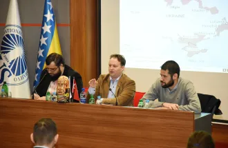 Fakultet menadžmenta i javne uprave je 3. marta 2022. godine organizovao javnu diskusiju na temu „Razumijevanje ruske invazije na Ukrajinu i njenih implikacija na Zapadni Balkan“. Oružani sukob u Ukrajini je prvi put izbio početkom 2014. godine i veoma brzo prerastao u dugotrajnu pat poziciju. Pošto je Rusija lansirala opsežnu vojnu invaziju na Ukrajinu u februaru 2022. godine, borbe su već uzrokovale stotine civilnih žrtava i natjerale hiljade Ukrajinica da potraže utočište u susjednim zemljama.