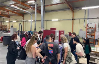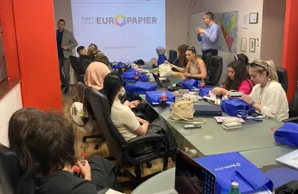 Nakon obilaska postrojenja, voditelj Odjela za prodaju i marketing u Europapieru, Mr. Ivan Cigić je upoznao studente sa različitim vrstama papira koje su dostupne u kompaniji. Studenti su imali priliku ne samo slušati, nego i pregledati uzorke materijala i proizvode nastale od tih materijala.