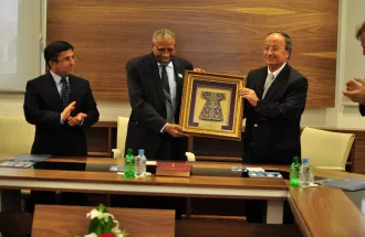 Nagradu (caftan) je u ime Univerziteta uručio predsjednik IUS-ovog Upravnog odbora, prof. dr. Hasan Zuhuri Sarıkaya, koji se zahvalio uvaženom gostu, naglasivši da je poštovanje prema različitostima, interaktivnom učenju i inovativna vizija ideje stvaranja Univerziteta zaista bila prepoznata od strane Islamske banke za razvoj (IDB), i njenog predsjednika dr. Ahmad Mohamed Ali-a.