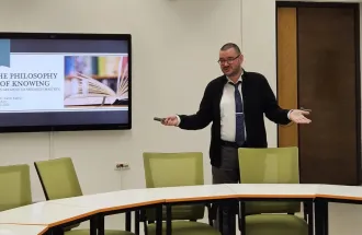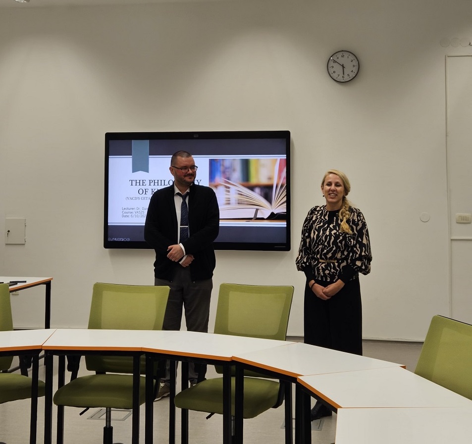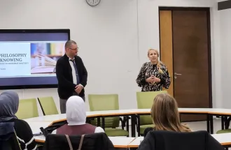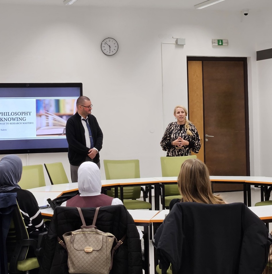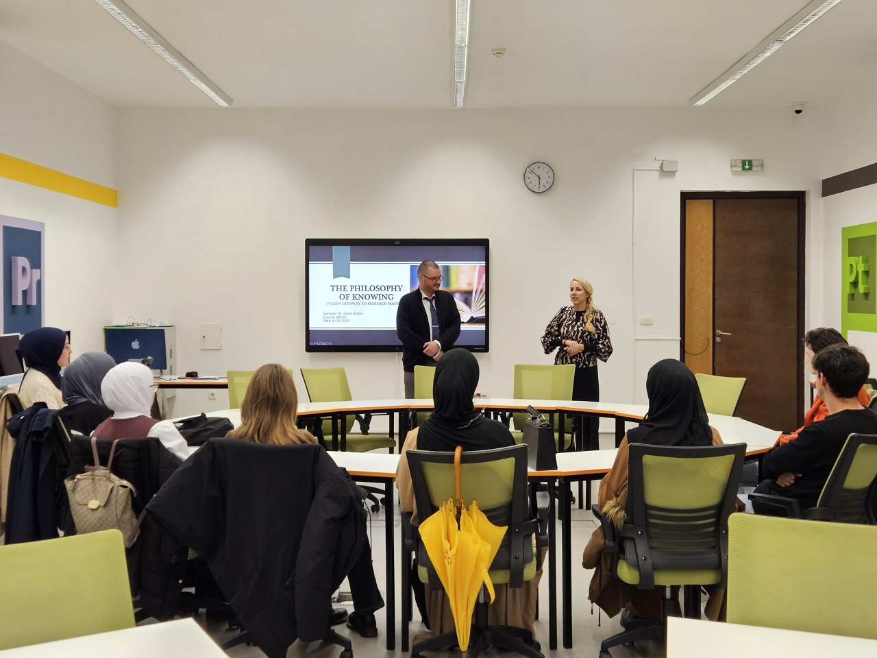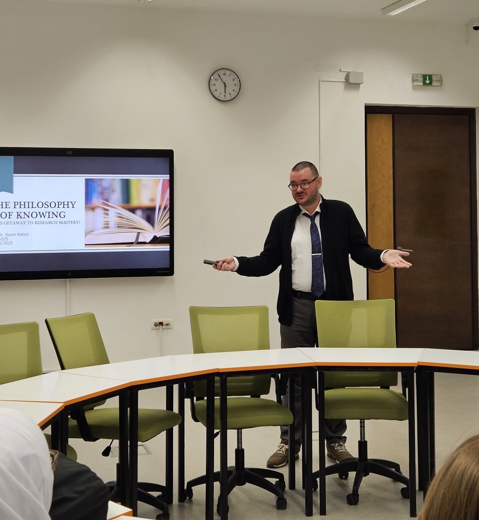 U ponedjeljak, 6. oktobra 2025. godine, studenti master ciklusa studijskog programa Vizualne umjetnosti i dizajn vizualnih komunikacija (VACD) na Internacionalnom univerzitetu u Sarajevu (IUS) imali su privilegiju prisustvovati inspirativnom predavanju pod naslovom „Filozofija znanja: VACD kao put ka istraživačkoj izvrsnosti“, koje je održao dr. Damir Kahrić, predavač na studijskim programima Engleski jezik i književnost (ELIT) i Engleski jezik i književnost – nastavnički smjer (ELT).