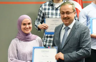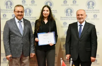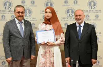 The certificates were awarded by the President of SEDEF Foundation Mr. Hasan Topaloğlu and IUS Rector Prof. Dr. Ahmet Yıldırım.