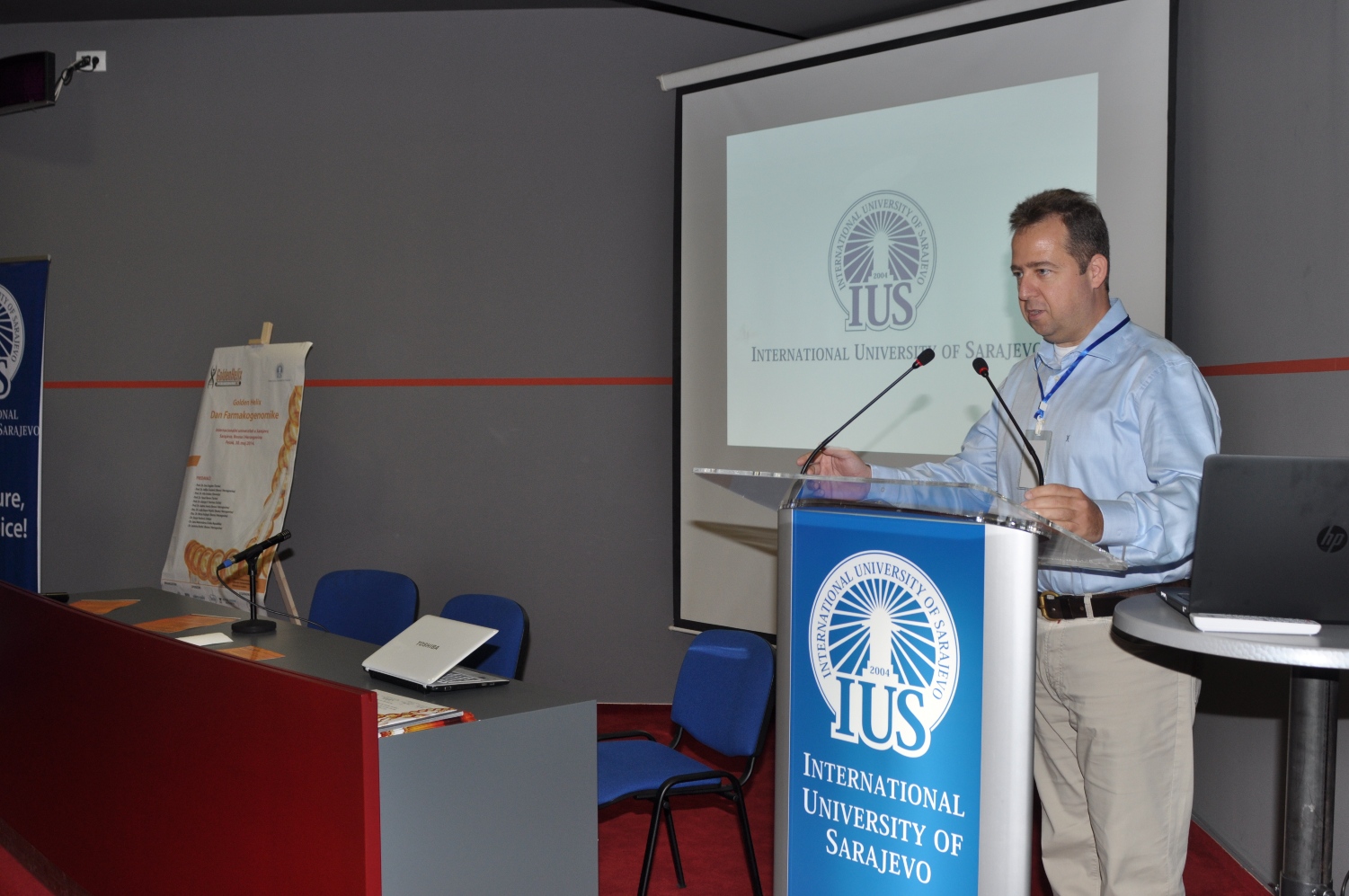 The vision of the International University of Sarajevo (IUS) is to become a major university and research center with a comprehensive excellence in the Balkans. In order to respond to this challenge, the University has organized a symposium in collaboration with the Golden Helix Institute of Biomedical Research in London and Cantonal Medical Chamber of Sarajevo, titled the" 13th Golden Helix Pharmacogenomics Day".