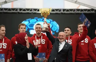 A very special part of the ceremony was dedicated to the IUS Wolves – the University’s basketball club who earned greatest words of appreciation for making a tremendous achievement this year by winning the A2 South League and thus earned the chance to be promoted to the A1 cantonal league. In only two years since their establishment, IUS wolves not only showcased exceptional athleticism and sportsmanship but also fostered a sense of teamwork and passion among its members. Through dedication, perseverance and commitment to excellence, they represented IUS with pride and brought joy and excitement to the IUS Campus joining students, faculty and staff together to celebrate the spirit of competition and teamwork. Mr. Topaloğlu presented the management and the players of the club with certificates of appreciation. In return, they shared their championship cup with the Foundation President, thus expressing their appreciation for all the support they have received from the SEDEF Foundation.