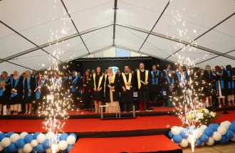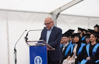 Ambassador of the Republic of Turkiye to Bosnia and Herzegovina, His Excellency Mr. Sadık Babür Girgin also addressed the graduates, their families and esteemed guests. He pointed out the efforts the University invests in providing quality education in state-of-the-art facilities and reminded the graduates that learning never stops. He wished them a lot of success in their future endeavors.