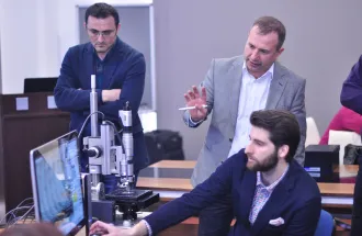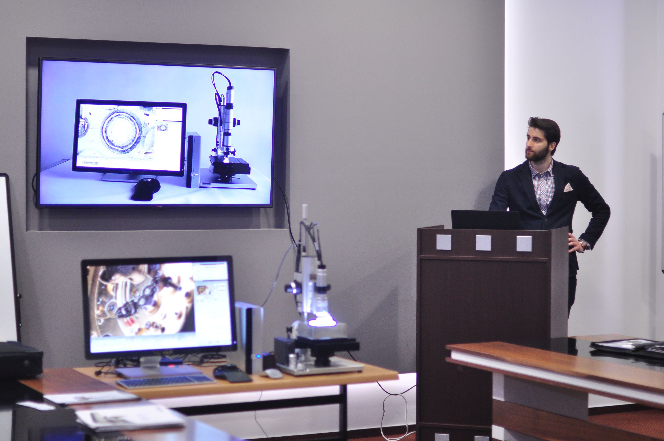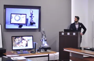 On 22nd of March 2016, in the organization of Research and Development Center, local company “Hirox” held a presentation about ‘3D Microscope’ in the IUS senate room. The 3-D optical microscope has become a versatile tool for measuring areal surface topography and texture in a wide variety of industries. A key factor in the growth of industrial applications has been hardware and software implementations that streamline and simplify its use, particularly for technician-level users.