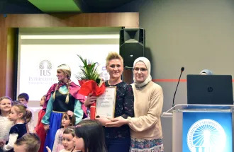 At the beginning of performance the audience was addressed by Kid IUS Director Nedžma Mašić Alibegović, and before the founder of kindergarten Mr. Armin Kerić. Afterwards, the audience was presented a video about Kid IUS adventures. Children also performed a few songs.
