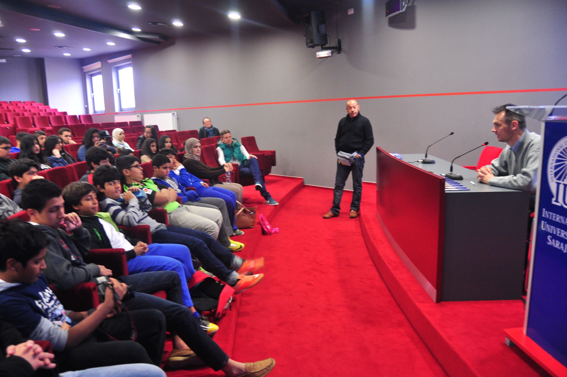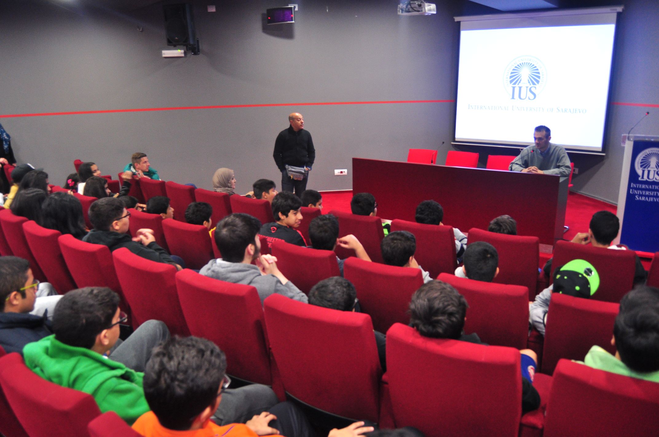 Delegation from the International School '' A'Takamul '' from Kuwait visited the International University of Sarajevo (IUS) on Tuesday, April 14, 2015. 40 students accompanied by their teachers, came to visit Bosnia and Herzegovina and expressed a wish to come to IUS and learn more about the opportunities to study at our University. Vice Rector for International Cooperation and Research, Assist. Prof. Dr. Mirsad Karić welcomed the guests in the main amphitheater of IUS.