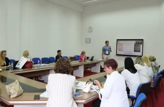 - Complementary perspectives: the conference provided room for juxtapositions on various levels, including that of (a) experience and age, with the extensive command of the field(s) being complemented and enriched by the freshness and open-mindedness of younger researchers (be it IUS’ Ajla Pervan, PhD candidate who moderated the plenary session, Tekla Gabunia from Georgia (Ivane Javakhishvili Tbilisi State University) – who belonged to the most active participants throughout the event; (b) the format of the conference components, with keynote talks being accompanied by group sessions and a workshop on the early morning of the second day of the conference (run Leah Davcheva from Bulgaria (AHA Moments).