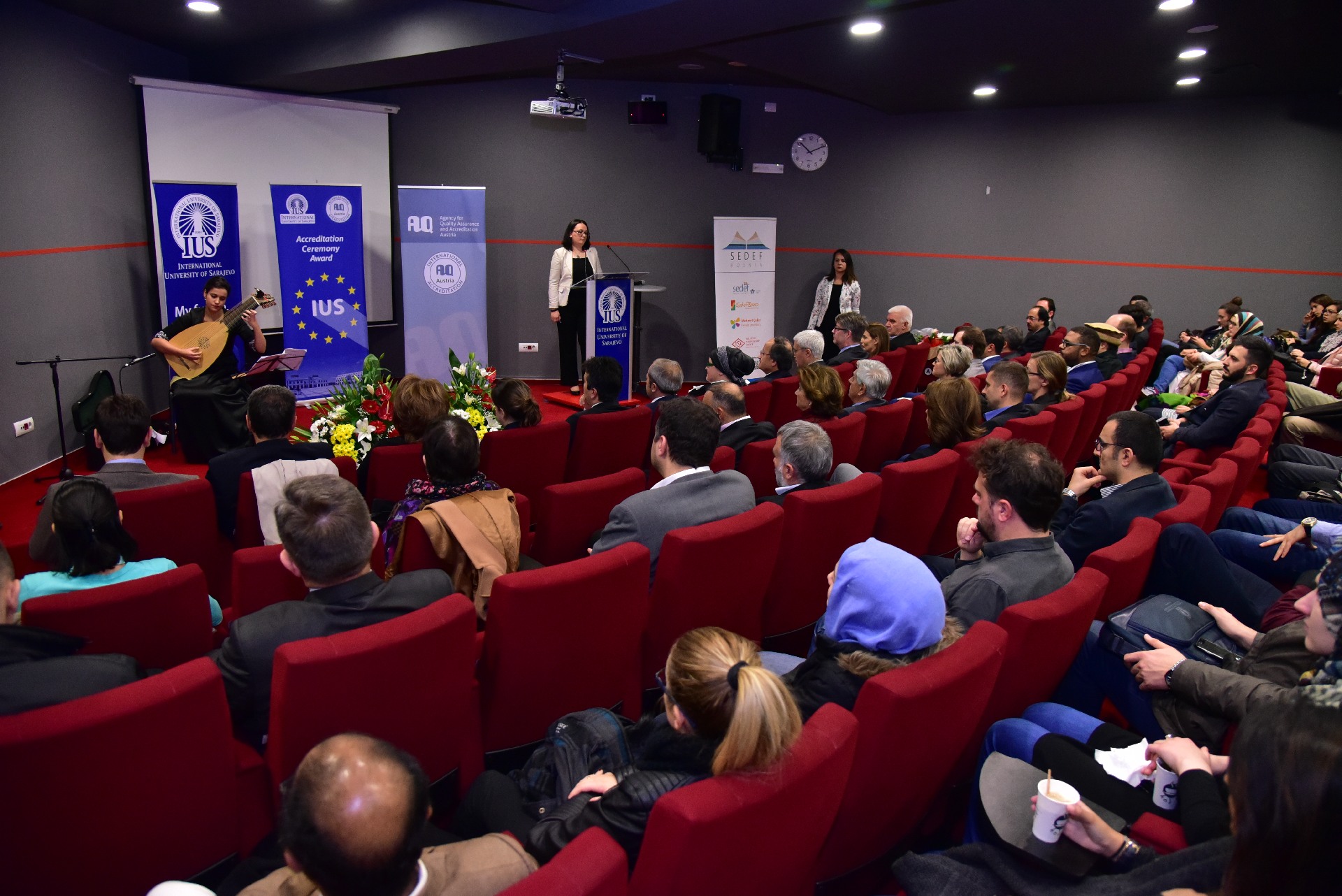 The ceremony started with the Lute Performer by Hana Alivodić, IUS student of Psychology. The speakers who delivered their speeches were: Prof. Dr. Hasan Zuhuri Sarıkaya, President of IUS Board of Trustees, IUS Rector Prof. Dr. Tahsin Erkan Türe, Dr. Achim Hopbach, and Managing Director of the Agency for Quality Assurance and Accreditation Austria (AQ Austria).