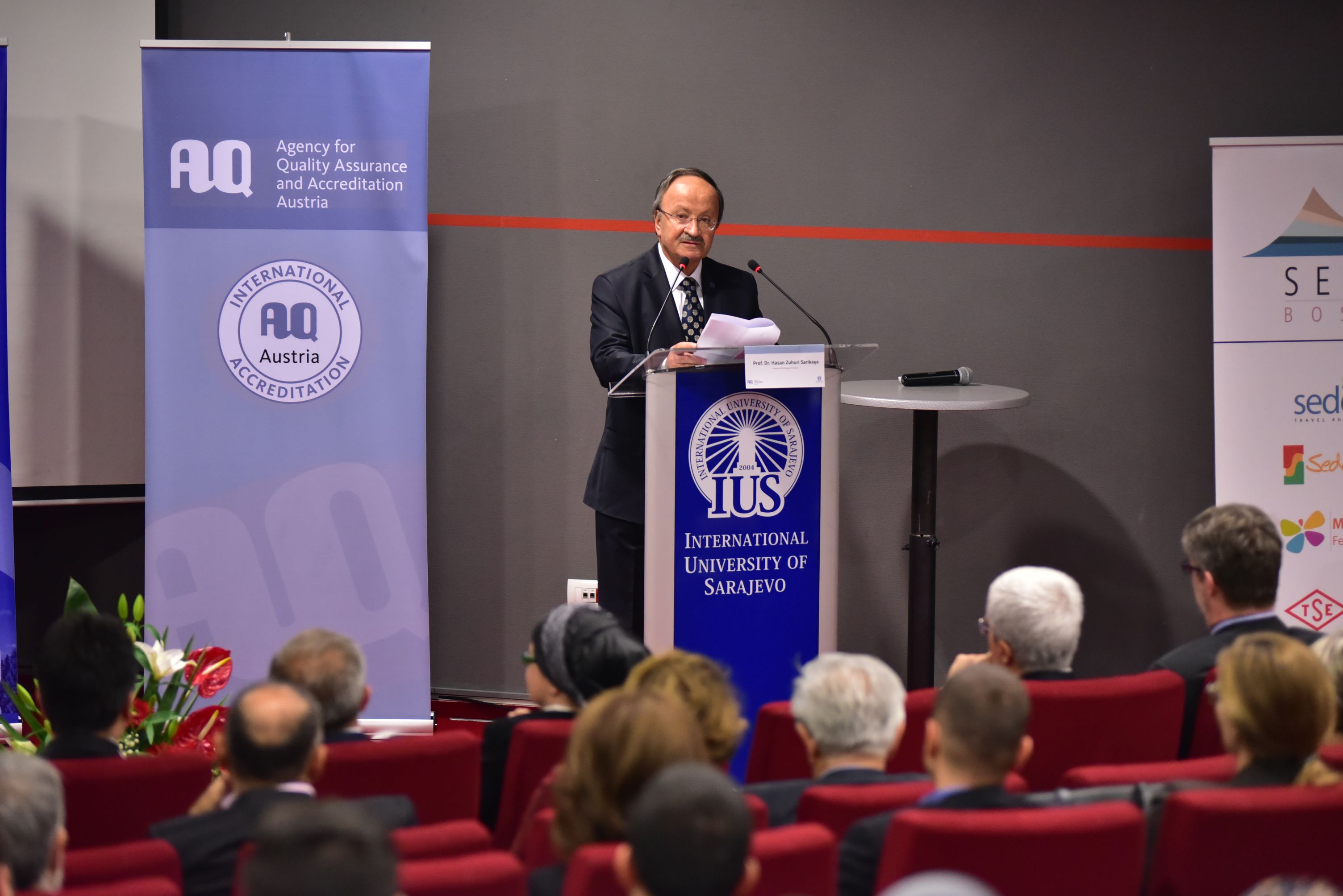 Prof. Dr. Hasan Zuhuri Sarıkaya, President of IUS Board of Trustees, welcomed the guests and emphasized: “Total amount of investment in IUS exceeds 40 million KM, total number of IUS employees is around 300, total operation and maintenance cost for the last 12 years exceeds 57 million KM, total amount of scholarship offered annually amounts approximately to about 6.5 million KM, in the academic year of 2016-2017 IUS students body consists of 1828 students, out of which 1058 are foreign students and 770 BH are nationals.” He also stated that there is still much to be done, but he believes that IUS family has the potential to achieve the set targets of its Strategic Plan.