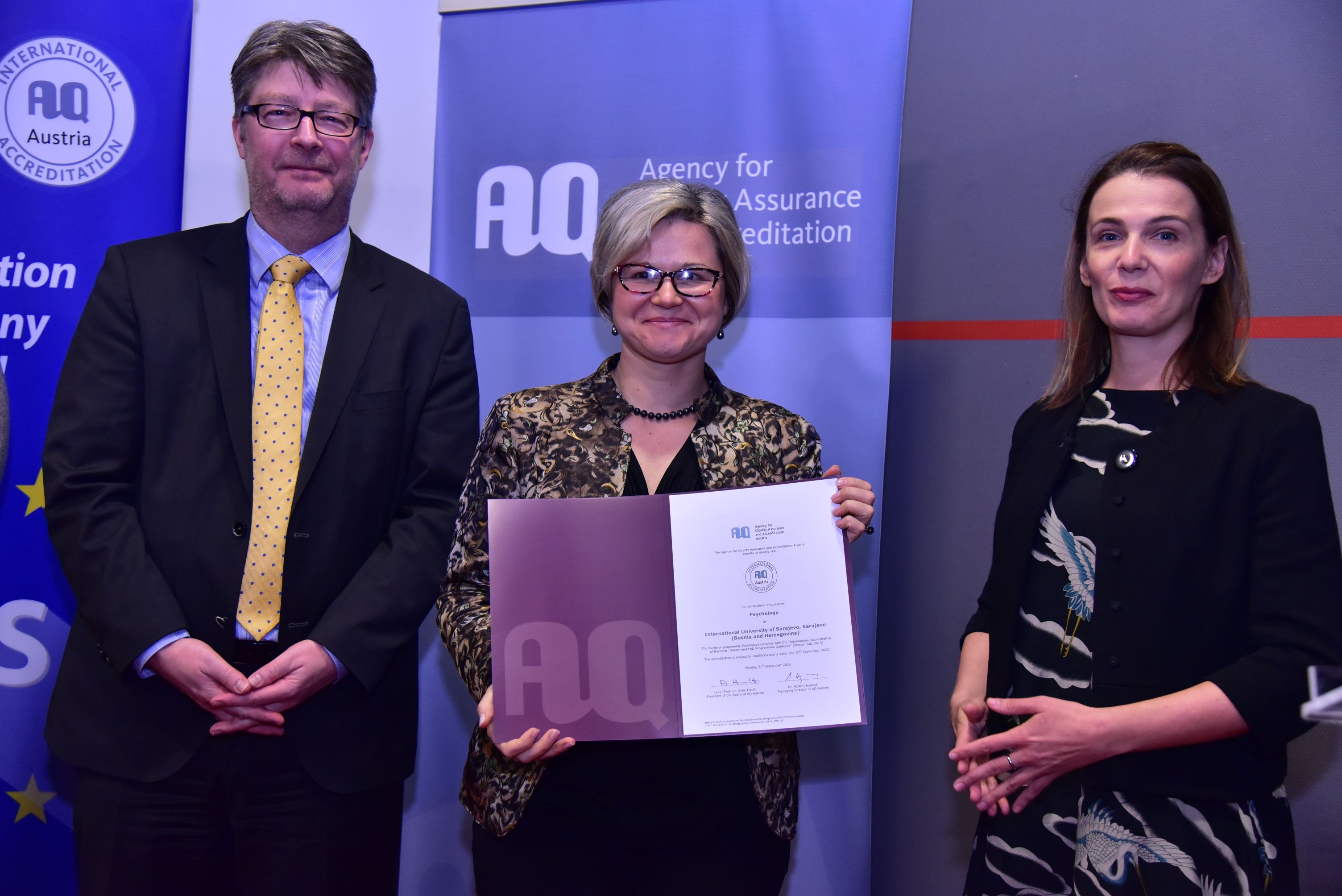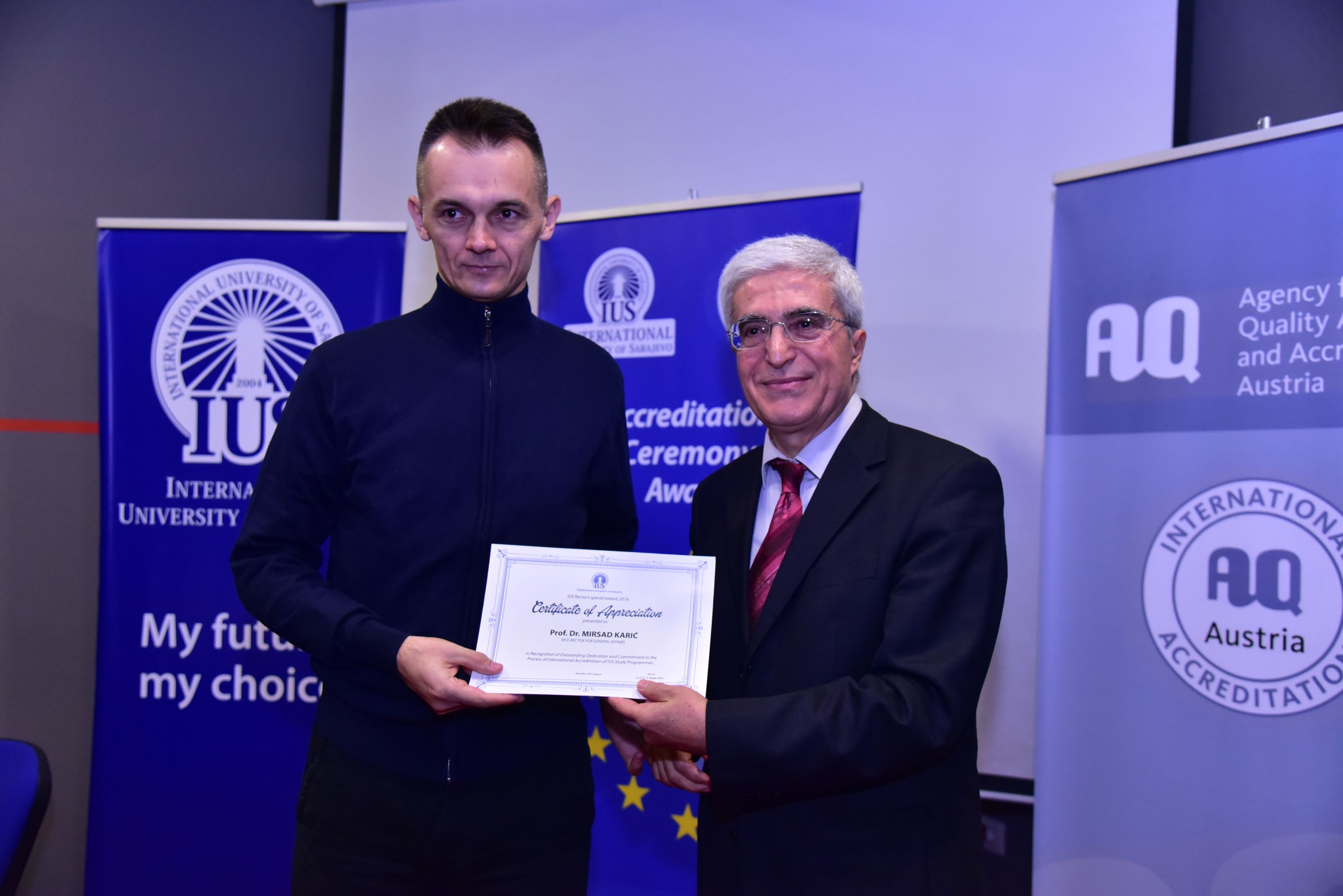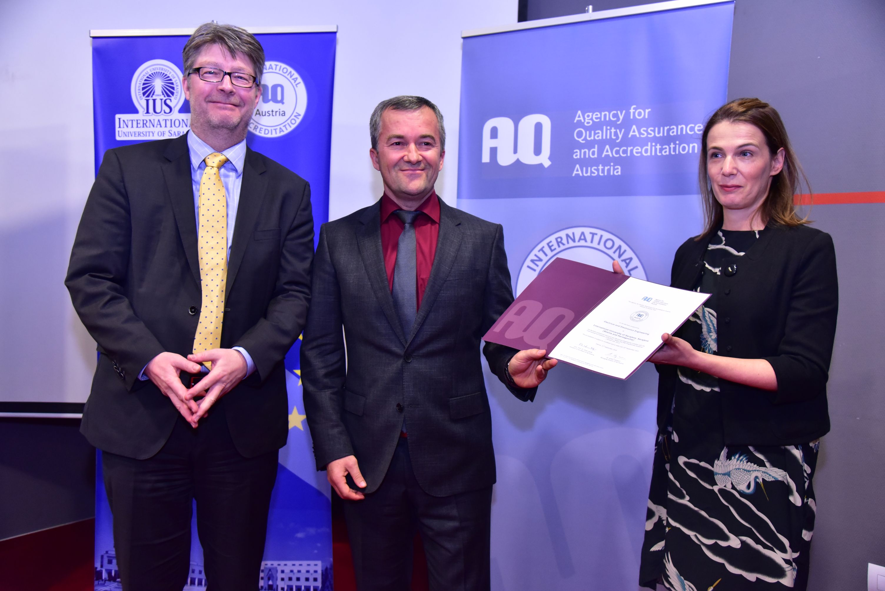 “I would like to congratulate the International University of Sarajevo for this positive outcome for the accreditation procedure which demonstrates publicly not only the clear commitment to the European Higher Education Area (EHEA), but also the study programs accredited are of High Quality and in line with principles of the EHEA: Bosnia and Herzegovina has joined the Bologna Process in 2003, without AQ which is one of the most important pillars of the Bologna Process. AQ is a tool to help to achieve one of the main goals of the BP; it helps to provide students with high quality preferences that can be recognized through the whole EHEA and that quality, and to help graduates for the success future and career”, said Dr. Achim Hopbach.