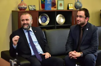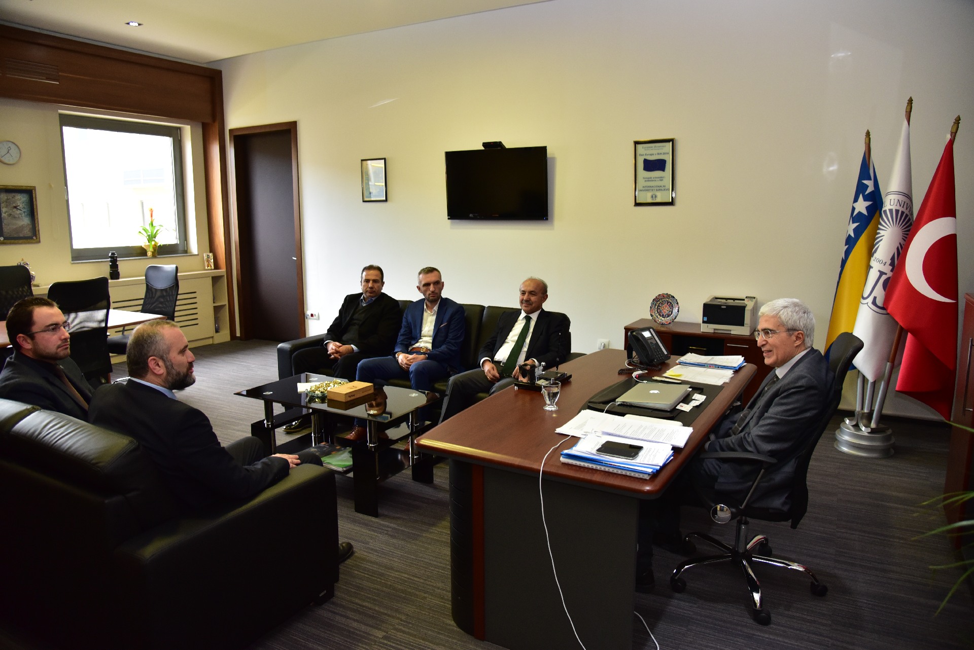IUS Representatives welcomed delegation from Turkey. Today, November 16th, 2016, Mr. Sabri Demiri visited International University of Sarajevo. Mr. Demiri is Advisor to the President of Turkey, Recep Tayyip Erdoğan. Rector of IUS Prof. Dr. Tahsin Erkan Türe welcomed the delegation from Turkey and gave introductory speech. The meeting process was based on the presentation of International University of Sarajevo from its foundation, historical facts. Mr. Demiri was well introduced into recent developments and achievements of IUS, such as Accreditation Ceremony, which was held last Friday at IUS. Mr. Demiri congratulated on the prestigious award and expressed his satisfaction that Republic of Turkey gives maximum support to this institution and better educational system in the Bosnia and Herzegovina. Vice-Rector Assoc. Prof. Dr. Ali Gürsel and Advisor to and Representative for the Rector Assist. Prof. Dr. Muhamed Ali presented future plans and projects for realization. Mr. Demiri left the International University of Sarajevo with satisfaction and wished to all IUS Collective better future in educational aspects and more awards for realized projects.