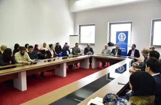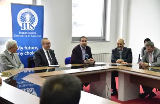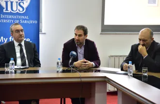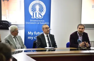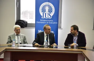 The distinguished guests were welcomed by the delegation of IUS headed by Rector Dr T. Erkan Türe. After the meeting with the University representatives, the lecture was organized for IUS students where Mr Şen talked about the identity and multiculturalism. His lecture was with the special focus on Bosnian context and students from Turkey studying in BiH.