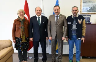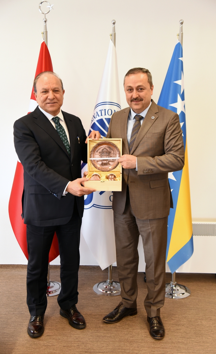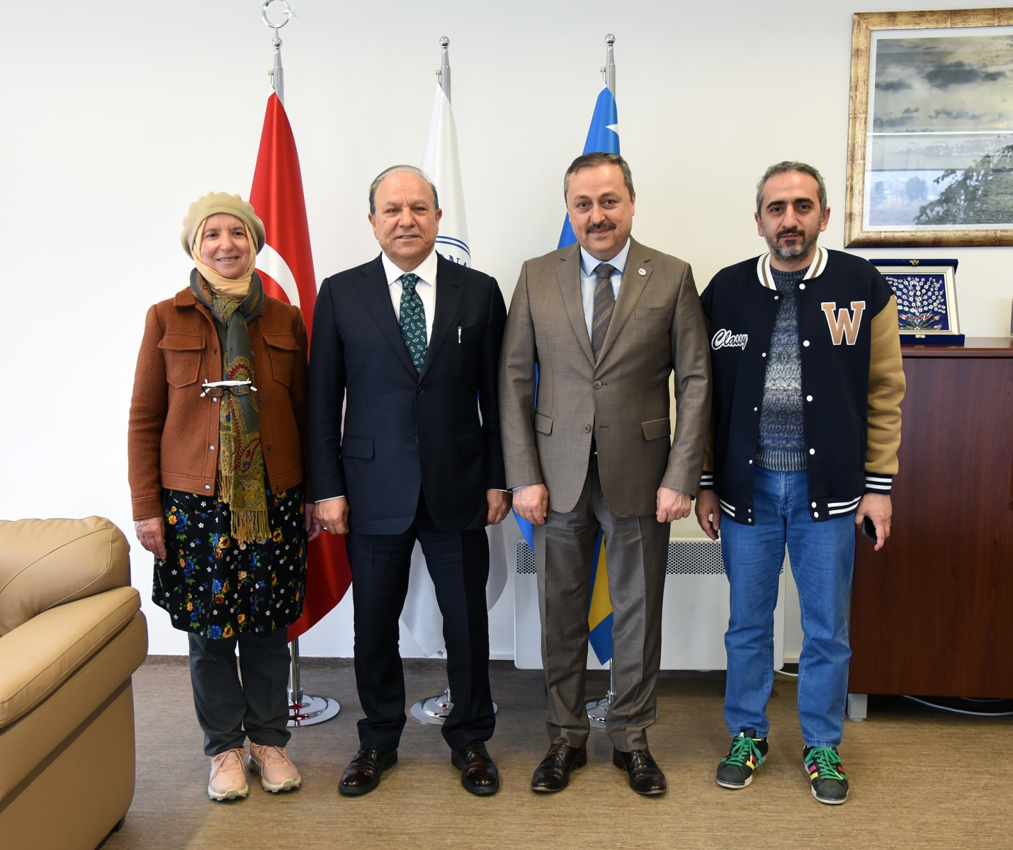 President of the Board of Trustees of Ahmet Yesevi University, Prof. Dr. Muhittin Şimşek paid a visit to the International University of Sarajevo on Wednesday, March 30, 2022 where he met with the IUS Rector Prof. Dr. Ahmet Yıldırım, Dean of the Faculty of Business and Administration Prof. Dr. Emel Topcu and Assistant Professor Muhammed Yasir Göz, Vice-Dean for Academic and Students Affairs of the Faculty of Arts and Social Sciences.