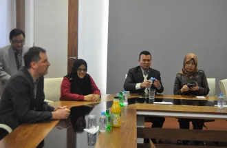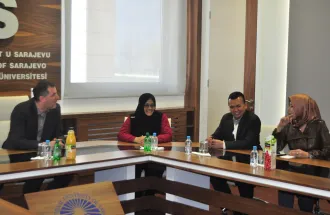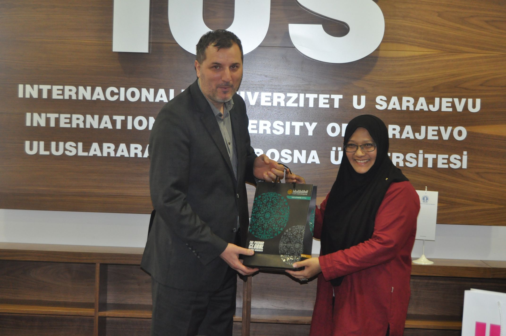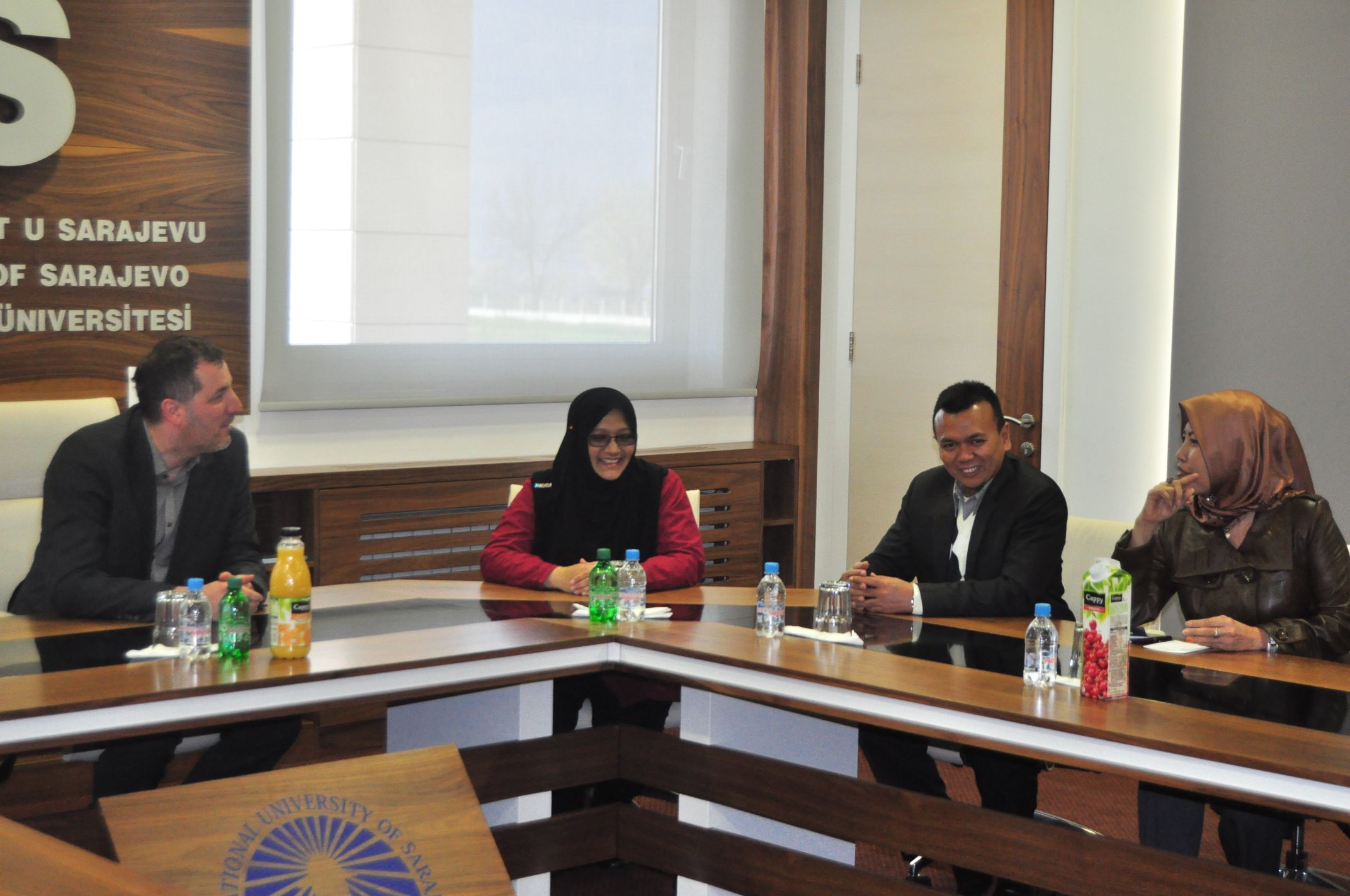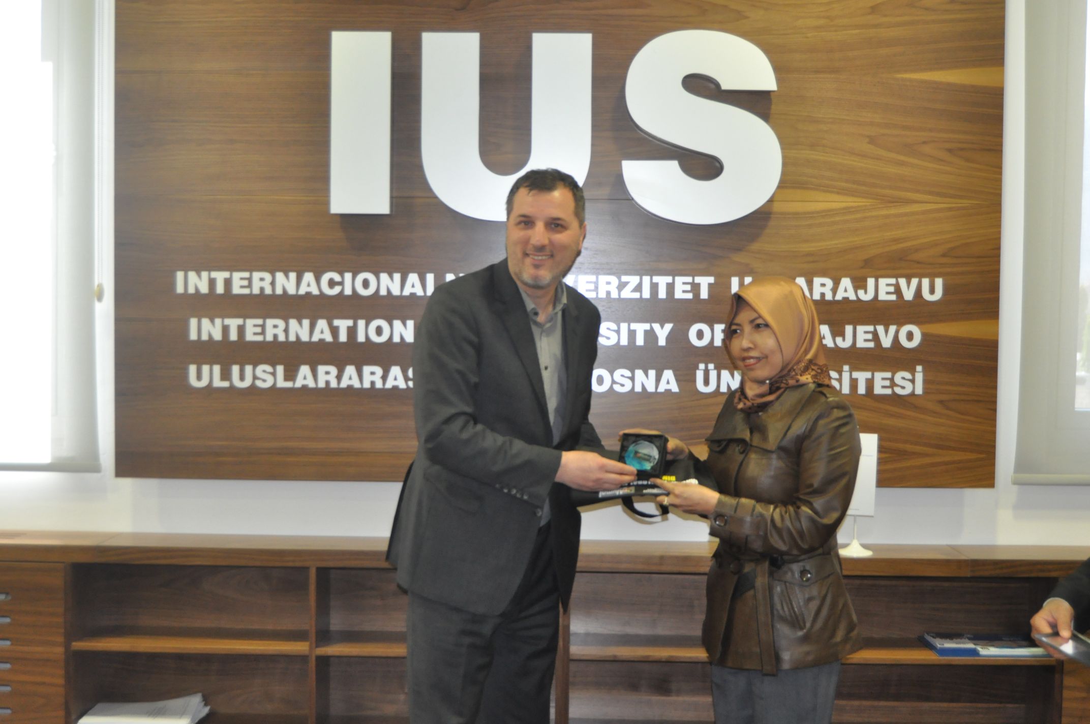 On Monday, March 20, 2015, the representatives of the Alumni Center of the International Islamic University of Malaysia (IIUM) met with the IUS employees who graduated and received BA, MA and PhD degrees at the IIUM. Cooperation between IUS and IIUM Alumni network was discussed at the meeting and they spoke about an academic cooperation between the IUS and higher education institutions in Malaysia. The head of the Malaysian delegation was Mrs. Siti Aisyah Ibrahim, Senior Assistant Director of the IIUM Alumni Center. Other members of the delegation were Dr. Halim Mad Lazim, Director of Alumni Center of University Utara Malaysia (UUM), Assoc. Prof. Dr. Mansor Abu Talib from the University Putra Malaysia (UPM), Minister-Counsellor at the Embassy of Malaysia in Bosnia and Herzegovina. The guests visited the IUS Campus and attended a presentation on academic structure and institutional development of the IUS in the past 11 years.