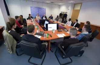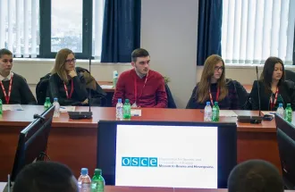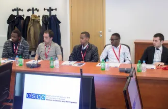 On Wednesday, April 1st, 2015, students from the Department of International Relations and Diplomacy of IUS Faculty of Business and Administration (FBA), with Assist. Prof. Dr. Peter Plenta, visited the Organization for Security and Co-operation in Europe (OSCE) in Sarajevo. During the visit, the Ambassador of OSCE to Bosnia and Herzegovina, Mr. Johannes Moore, addressed a lecture to the students about the mission of Office of OSCE in BiH as well as future goals of this organization.