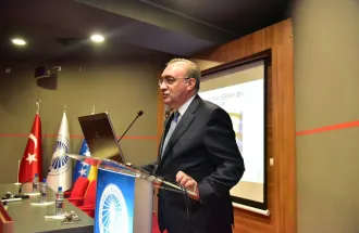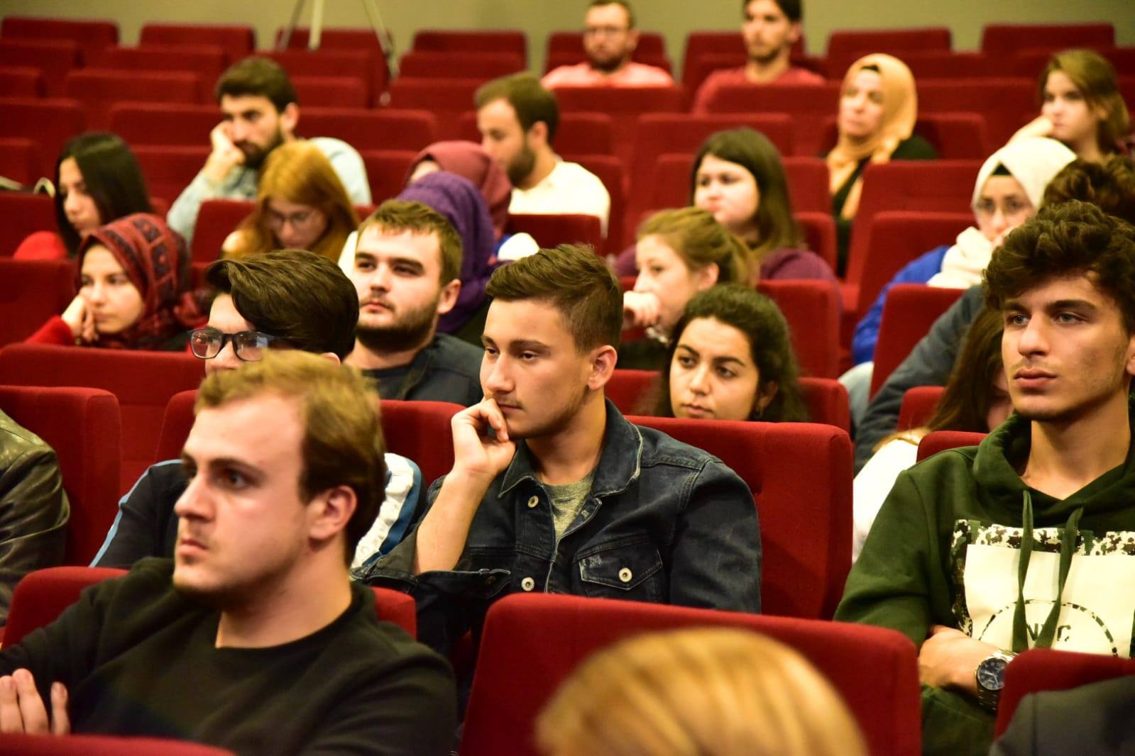 In front of all present students in the amphitheater, the IUS Rector Ahmet Yıldırım wished a warm welcome to the ambassador, and thanked him for taking the time in his tight schedule to give a lecture our students.