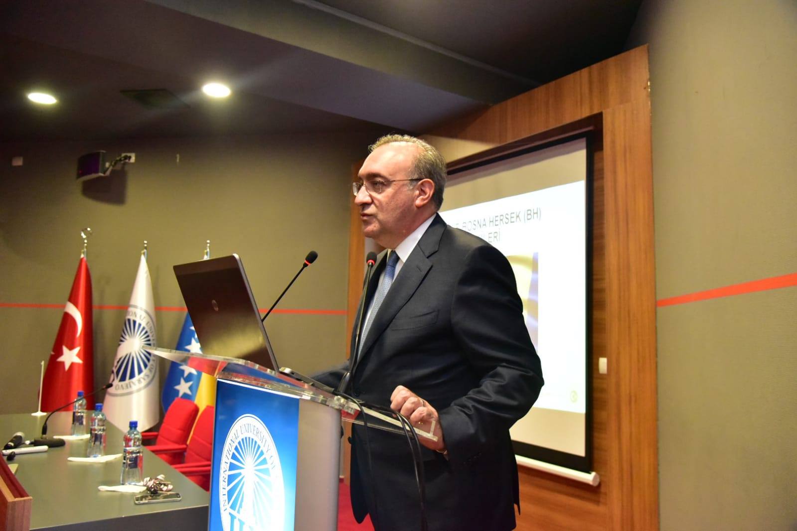 Ambassador Koç wished students successful beginning of the new semester, and congratulated students for choosing International University of Sarajevo for their education. Ambassador said that the IUS is the educational institution in Bosnia and Herzegovina recognized by the higher education ministry of Turkey. In his lecture he gave students an introduction to Bosnia and Herzegovina: its history, government, economy, bilateral relations with Republic of Turkey, and its centuries-long multicultural character as reflected in ahidaname by Mehmed the Conqueror. He also strongly advised IUS students to learn Bosnian language.