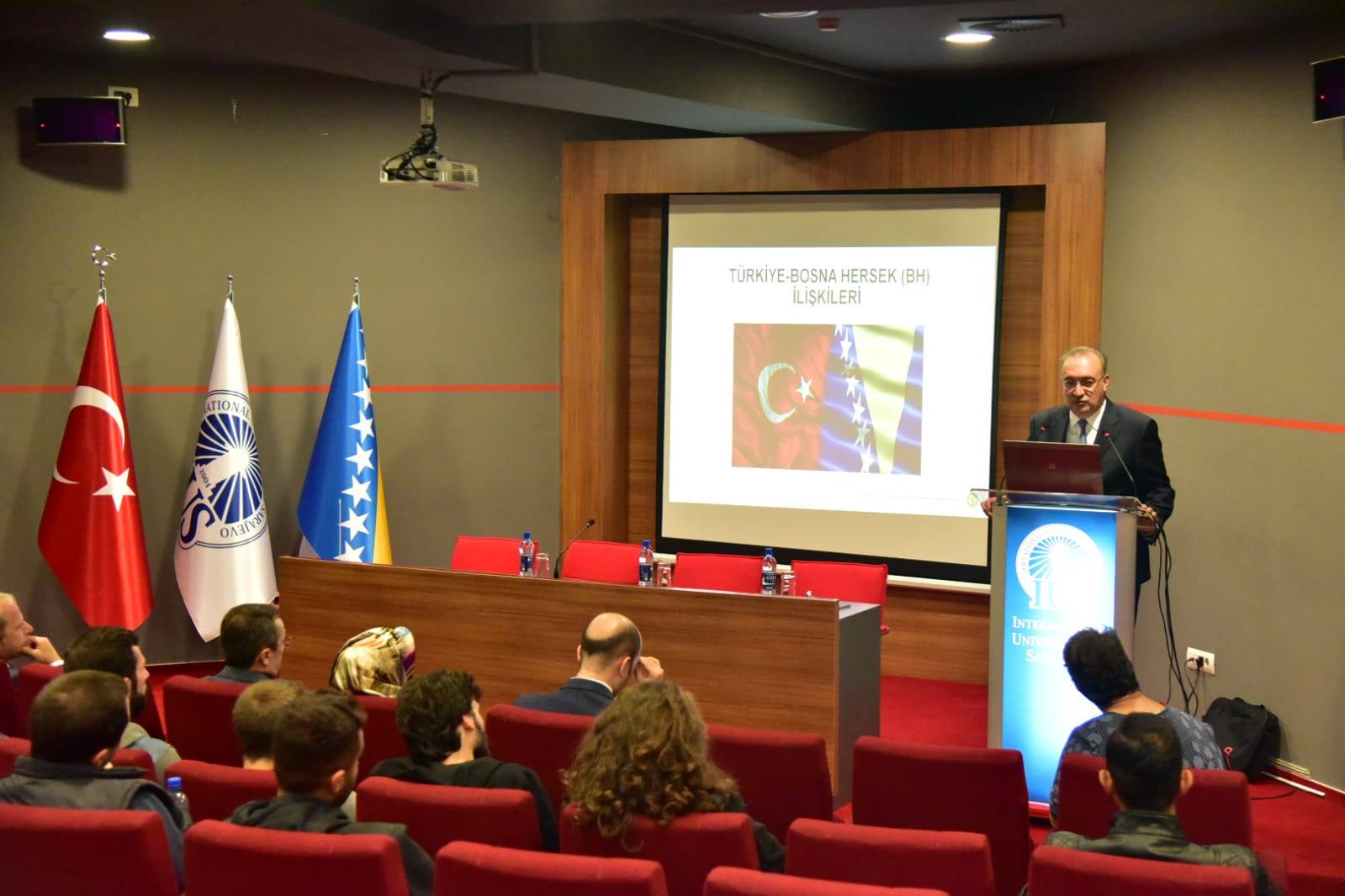 On October 10, 2018, H.E. Haldun Koç, Ambassador of the Republic of Turkey, the embassy’s First Secretary Mr. Oğuz Kılıç, and attaché for educational affairs Mr. Vasi Ete visited International University of Sarajevo (IUS) to give lecture for the freshman students.