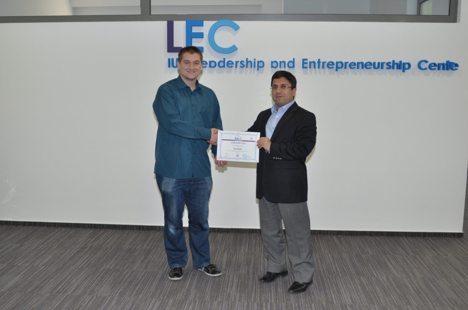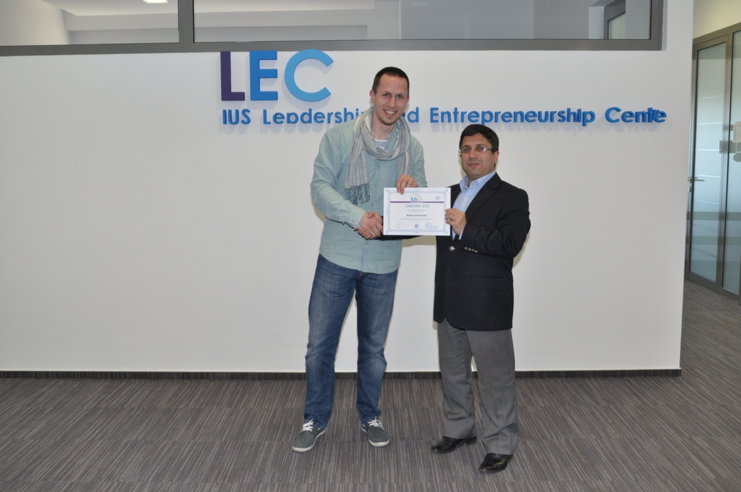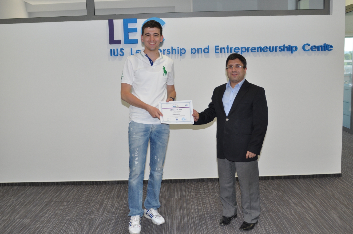 On Wednesday, 21st of May, 2014, a ceremony of awarding certificates to the students of Module 1 was organized by the IUS Leadership and Entrepreneurship Center (LEC) at the International University of Sarajevo. All participants in the Module 1 had the opportunity to learn more about business communication, management and control, marketing and advertising as well as entrepreneurship.