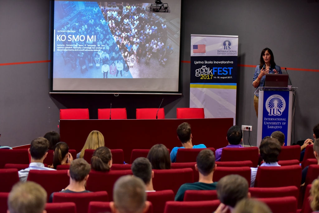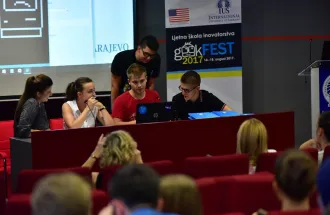 Summer school of innovation, geekFEST2017, gathered enthusiastic high school students, interested in technology and innovation, from all over Bosnia and Herzegovina. This year's school lasted from August 14 until August 18, 2017, and was hosted at International University of Sarajevo. More than 50 students from different parts of BiH had a chance to attend five-days IT courses, free of charge.