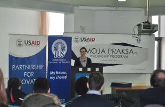 The ceremony of awarding certificates to participants of the second cycle of the project titled "Moja praksa” was held on Friday, February 6, 2015, in the premises of International University of Sarajevo (IUS), 58 participants of this internship program, received diplomas and certificates for their hard work during of three month practice on the real ICT projects under the mentorship of local IT companies. In addition to awarded certificates participants also received letters of appreciation from 14 companies that participated in this worthwhile project.
