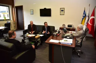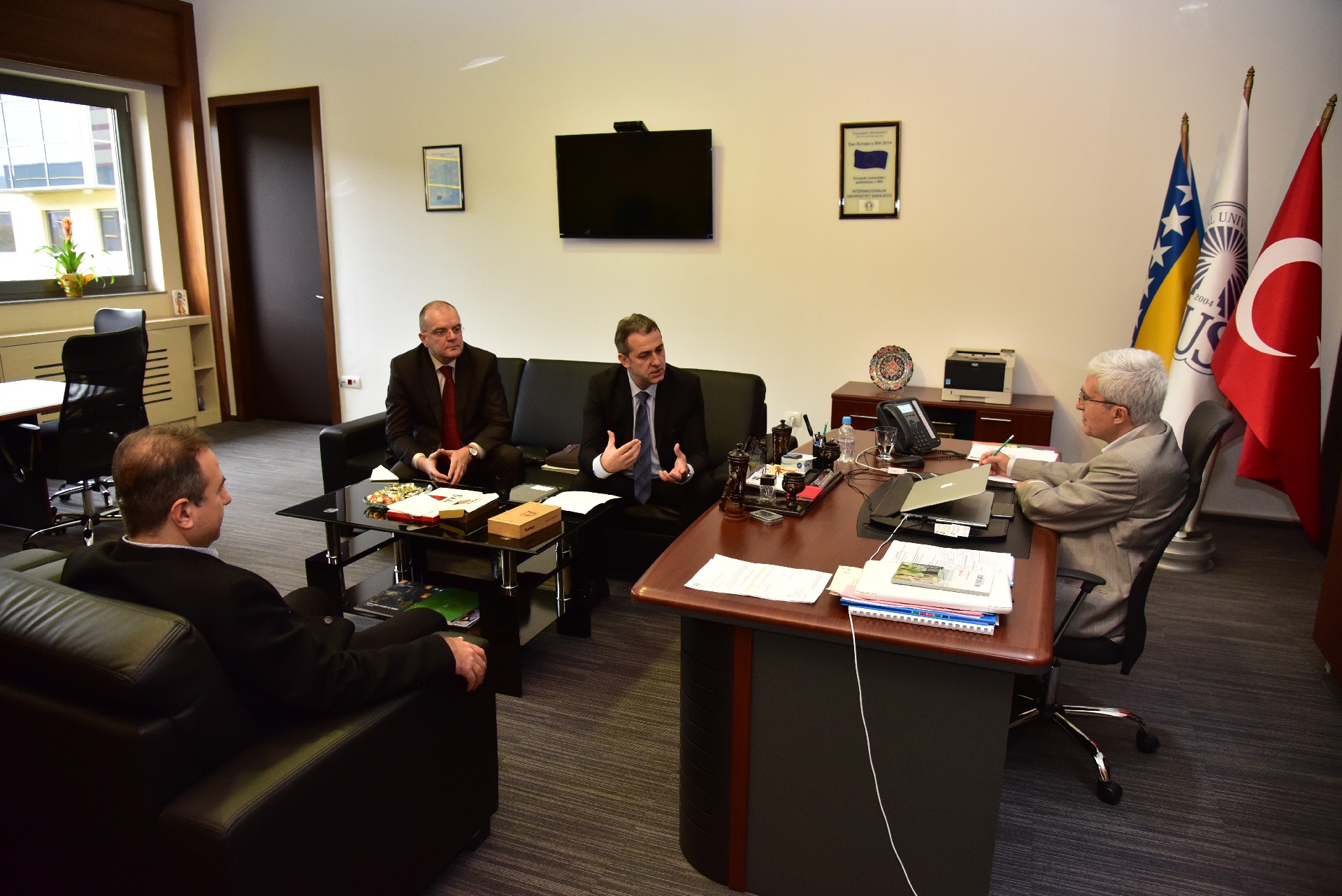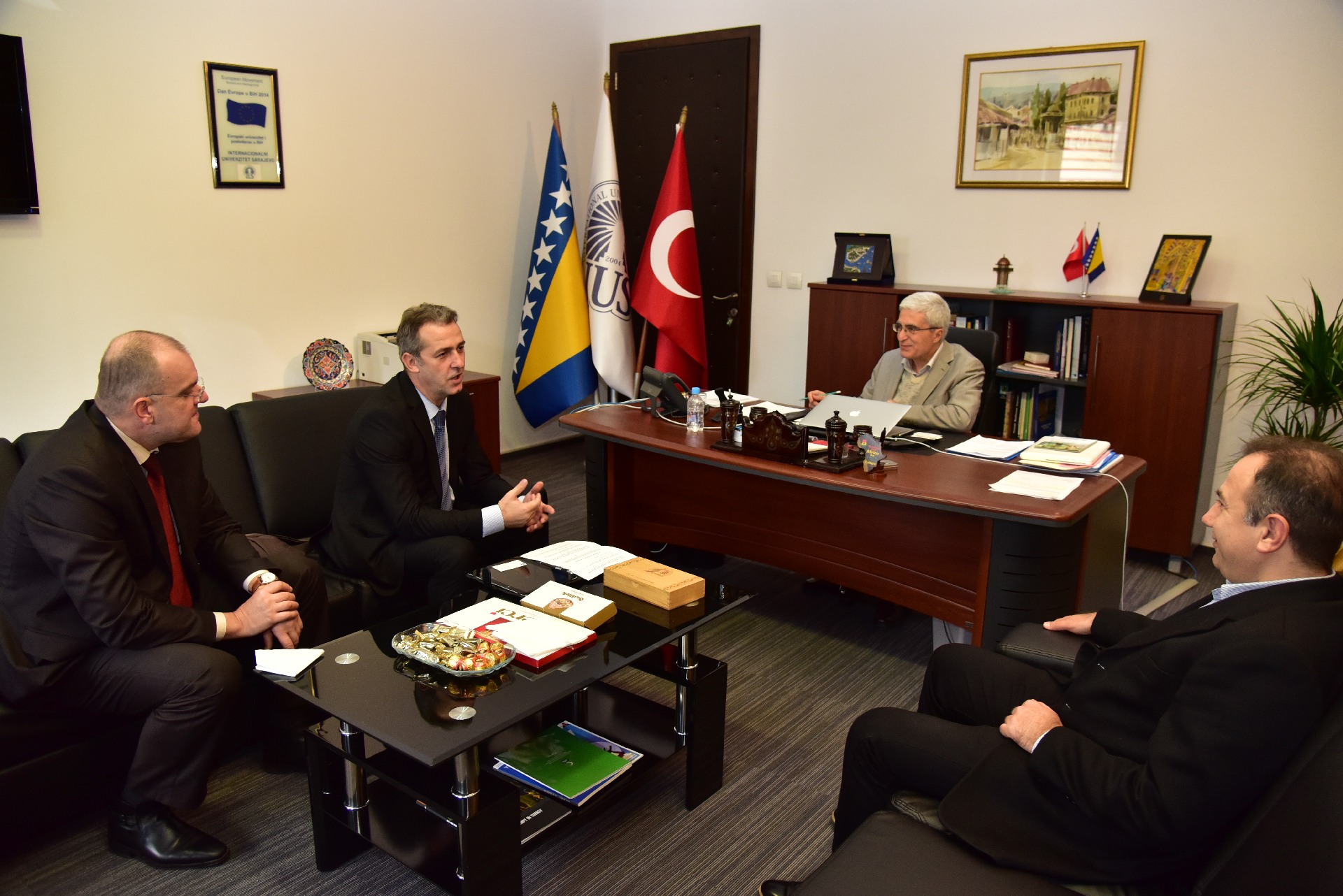 The opening speech to the members of Chamber of Commerce director Mirsad Jašarspahić and Emir Pašić gave IUS Rector himself. They were discussing about the importance and future plans between International University of Sarajevo and Chamber of Commerce. Reason for this visit is the chance to stay in contact with University and establish stronger connection between those two institutions for future plans and project realization.