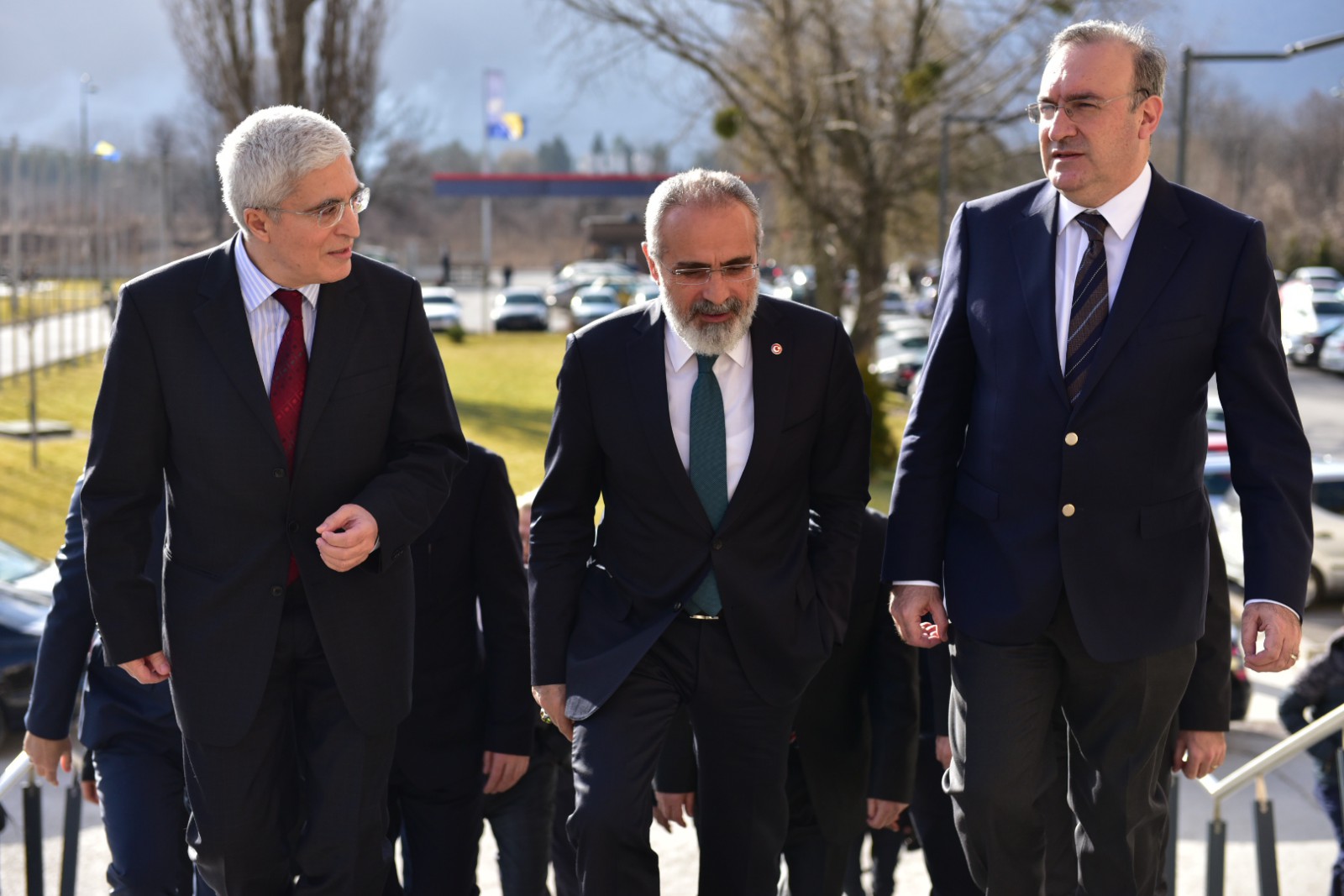 On Tuesday, Feb. 28, 2017, the Chief Adviser to the Turkish President Yalçın Topçu visited International University of Sarajevo (IUS). Mr. Topçu was welcomed by IUS Rector Prof. Dr. Tahsin Erkan Türe, whilst the meeting was also attended by a delegation of Cultural Center "Yunus Emre" and Turkish Embassy in Bosnia and Herzegovina led by H. E. Ambassador Haldun Koç. In the meeting, Rector Türe informed the distinguished guest about the ongoing activities at IUS and future plans for the development of the University.