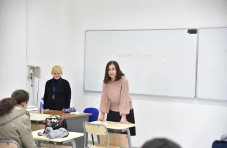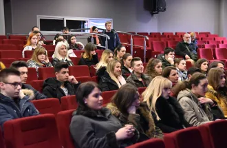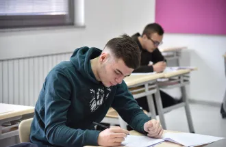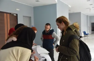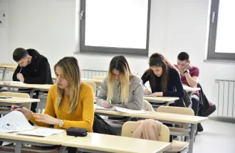 At the welcome ceremony that started around 11 o'clock in the red amphitheater, the guests were given a short video presentation about the IUS. On behalf of the IUS, Head of PR Office Mirnes Baltić wished a warm welcome to the students, and the Program Coordinator Dr. Ervin Kovačević gave a short presentation about the English Language and Literature study program. After the welcome ceremony students sat for the test and the competition started.