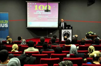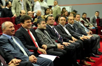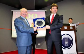 After the question and answer part, Mr. Hasan Topaloğlu President of Foundation for Education Development congratulated the guest lecturer, Mr. Murat Yalçıntaş, and presented him a gift on behalf of the university.