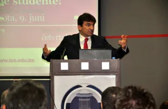 Dr. Murat Yalçıntaş also held a lecture at IUS. The lecture was attended by students of undergraduate and postgraduate studies at our university, as well as by academic staff. Murat Yalçıntaş declared that Turkish companies have already recorded substantial investments in Bosnia and Herzegovina and expressed his belief that there was also an interesting parallel drawn between the themes of cultural and history of of Turkish and Bosnian societies in general and a connection between the two communities.