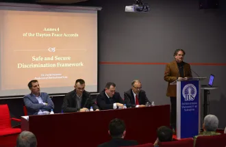 ''The city of Dayton was chosen because it was ''isolated'' enough for peace negotiations, but still close enough to the political center of USA, the city of Washington. Wright-Patterson Air Force Base has rich historical heritage, so the political analysts of that time believed that is the main reason for having these negotiation here at Dayton so important’’ – said Selmo Cikotić. ‘’What does Dayton represent here? It represents the end of the bloody war, Dayton Peace Agreement. It symbolizes a peace that was established and compromise that was reached. It is associated with Dayton constitution on which we still debate. Is it federal or not?’’ – said Emir Hadžikadunić. ''When it comes to Dayton Peace Agreement, I must state that we can only change or ''update'' Annex 4 (Constitution of BiH) and I believe that it is necessary for further development, well being and prosperity of this country. But for that, we need to have strong will of all political elites from all three constitutional people of BiH and to be determined to act accordingly. I am one of the few people who believes that we will never have a functional state'' – said Prof. Dr. Zarije Seizović.