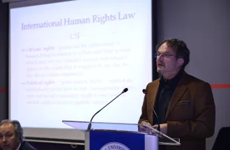 During the introductory speech, IUS Rector, Prof. Dr. Yücel Oğurlu welcomed the distinguished guests and stressed the importance of two very important events that occurred during the past 20 years in BiH, namely the signing of the Dayton Peace Agreement and the genocide in Srebrenica. ‘’It is affecting an all structures of the county. Today the Dayton is highly involved in constitutional law and law in general in Bosnia what is reflected in everyday life. In one hand, it brought peace, but on the other hand it is obstructing further development of the country’’ - said Rector Oğurlu. During the discussion, the panelists talked about one of the most important dates in modern BH history, the signing of the Dayton Peace Agreement which ended the war in 1995 in Bosnia and Herzegovina. ''As a member of the International Criminal Court (ICC), I would like to point out that the Court was created to be protector of human rights, to prevent violence and it was intended to complement existing national judicial systems which is still crucial part of Dayton Peace Agreement implementation’’ - said Prof. Dr. Hadi Shalluf.
